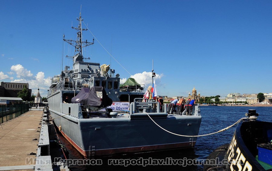 Параллельно с ним, но северным мелководным фарватером в акваторию «Ленэкспо» перешел противодиверсионный катер «Нахимовец» проекта 21980. Также утром в акваторию «Ленэкспо» прибыл быстроходный патрульный катер П-281 проекта 03160, от стенки ОАО Адмиралтейские верфи" на буксирах перешла большая подводная лодка «Старый Оскол» проекта 636.3 и базовый тральщик «Александр Обухов» проекта 12700, который после ночного перевода от стенки ОАО «Средне-Невский судостроительный завод», дожидался своей очереди у Адмиралтейской набережной Санкт-Петербурга.