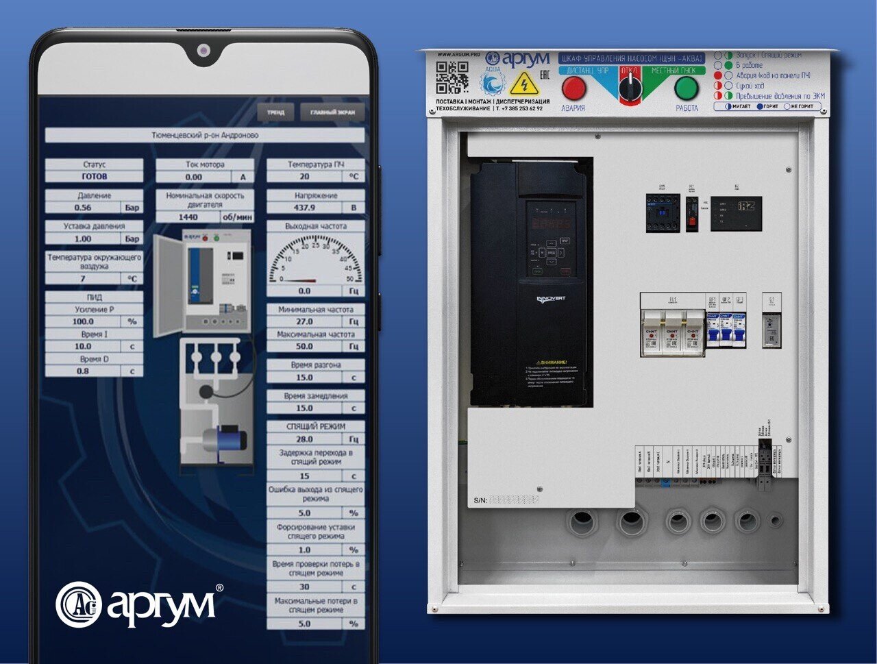 © argum.pro «Пусконаладку шкафов „ЩУН-АКВА“, в какой бы далекой точке они не были установлены, мы выполняем с помощью дистанционного подключения. И это же подключение впоследствии мы можем использовать для контроля работы этого шкафа. У заказчика на телефоне стоит приложение, он может заходить, смотреть, как работает его насос, водозабор, в каком он состоянии, нет ли там сбоев, отказов», — рассказывает директор компании «Аргум» Алексей Григорьев.