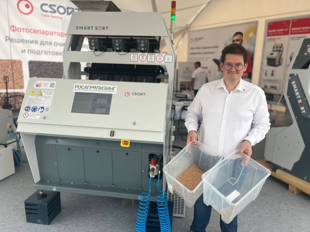 © csort.ru Фотосепаратор «СиСорт» размещен на стенде Алтайского края. Причем, он не просто стоит там, специалисты компании постоянно демонстрируют работу оборудования, проводят десятки сортировок различной продукции каждый день.