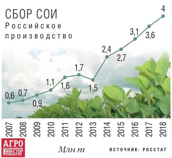 В 2018 году валовой сбор сои достиг рекордных 4 млн т. Получив хорошую рентабельность в прошлом году, аграрии европейской части России расширили посевы на 130 тыс. га.