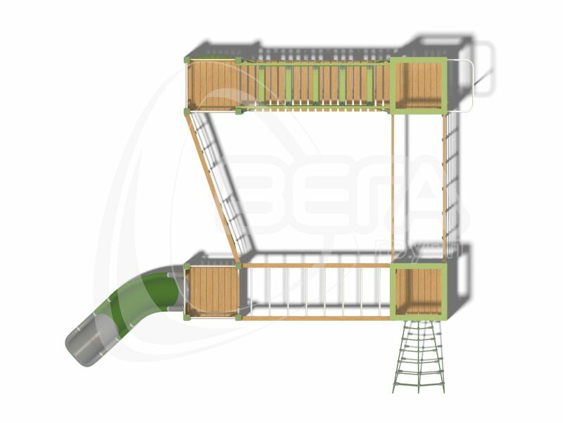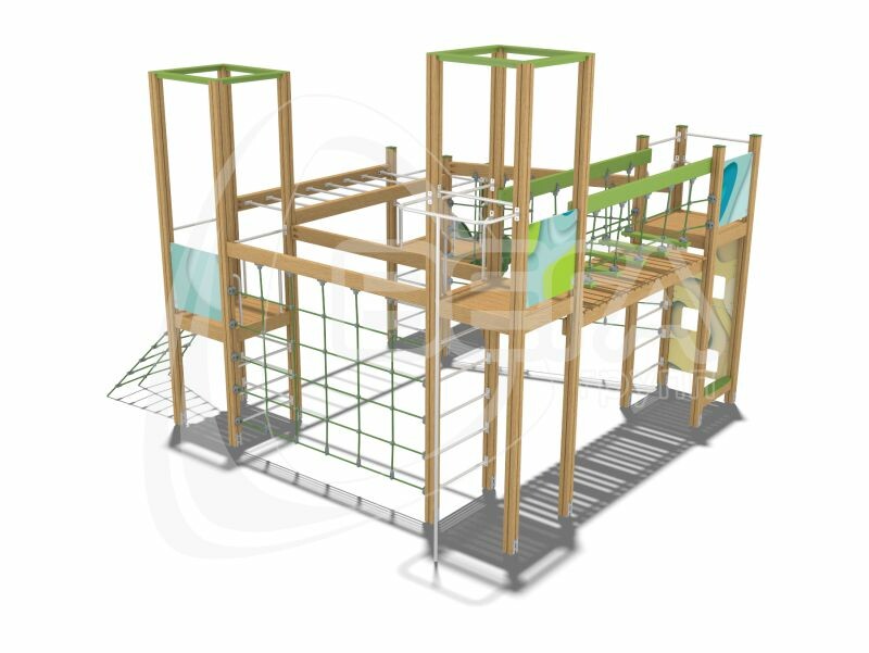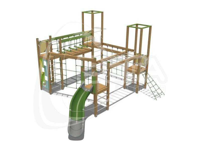 "Санта-Крус" представляет собой 4 «башни» разной высоты. Они соединены между собой различными элементами: мостиком, перекладиной лестницей-рукоходом, сеткой. От одной «башни» спускается открытая горка, другая дополнена металлическим пожарным шестом. Подняться наверх можно по лестнице или натянутой под углом сетке. Впрочем, у «башенок» нет стен, а потому забраться на них можно любым способом, который придумает ребенок.