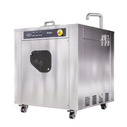 Нагрев продукта осуществляется за счет водяной рубашки под управлением терморегулятора. Для откачивания продукта котлы оснащены насосом, управляемым переключателем, расположенным на боковой панели. Управление насосом может осуществляться и с помощью датчика уровня, расположенного в темперирующей камере.Слив готового продукта может быть произведен и с переднего крана слива, расположенного на передней стенке под съемной крышкой.Котлы оснащены миксером, который легко снимается для очистки. Все детали котлов выполнены из аустенитной нержавеющей стали. Для удобства транспортировки котлы оснащены колесными опорами с ножным тормозом.