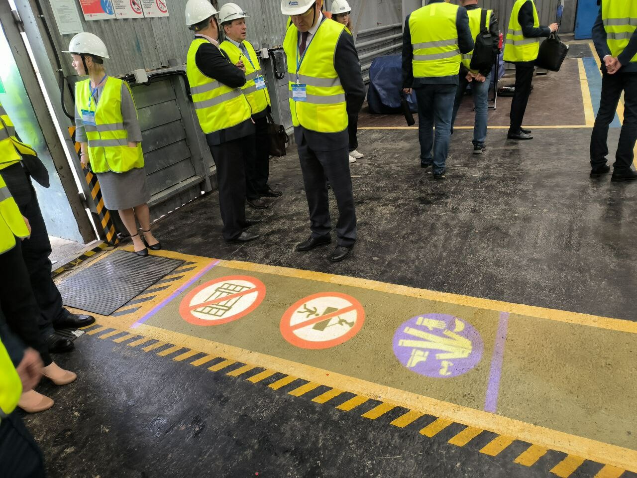 Подобным решением стала установка проекторов световой демаркации опасных зон как в производственных помещениях предприятия так и на улице. В рамках работ по внедрению проекционной демаркации было установлено 6 проекторов световой демаркации. Три из них — на улице и три в производственных помещениях.