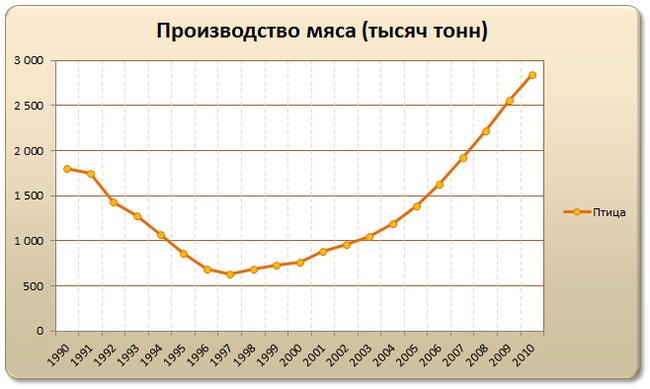 В 2012 году в России наблюдается существенный прирост производства мяса птицы