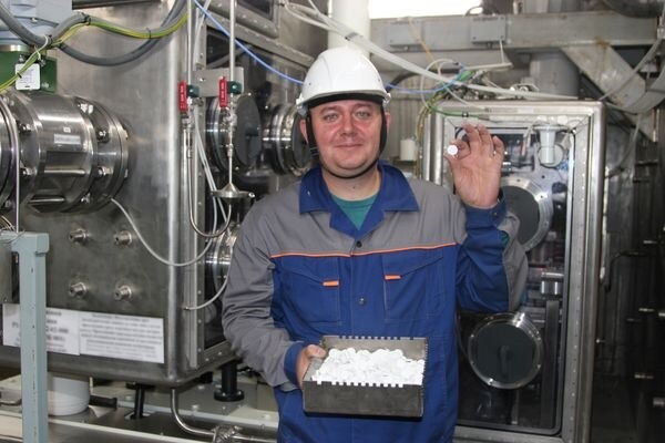 В качестве имитатора во время тестирования использовался порошок оксида алюминия. «Этот материал хорошо прессуется, дает возможность четко просматривать геометрию шашек, — пояснил ведущий специалист участка приема, подготовки и изготовления таблеток ядерного топлива МФР ОДЭК АО „СХК“ Алексей Филиппов. — Применение современного оборудования позволяет добиваться необходимой производительности на модельных порошках».