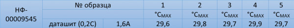 Также мы провели тест на повышение температуры, результаты получились такие, по итогам которого ни один из образцов не превысил температуру 34 градуса по Цельсию.