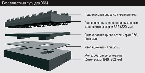 Завод будет выпускать железобетонные плиты, необходимые для безбалластного пути ВСМ, а также полимерный упругий слой для защиты конструкции от повреждений. Конструкция безбалластного пути разработана «Нацпроектстроем» специально для проекта ВСМ с учетом высоких требований к скоростному режиму и природных условий. Предприятие закроет до двух третей годовой потребности в плитах для эстакад и земляного полотна.