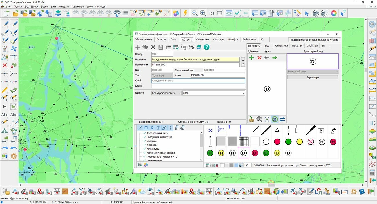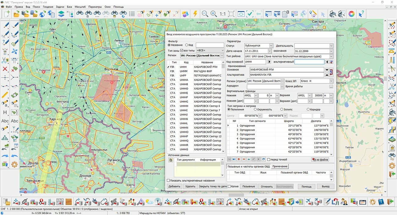 В новой версии в диалогах ввода информации («Ввод аэродромов», «Ввод элементов структуры воздушного пространства», «Ввод инфраструктуры аэродрома«) реализована возможность ведения базы данных посадочных площадок для беспилотных воздушных судов и элементов структуры воздушного пространства класса H в соответствии с постановлением Правительства РФ от 31.07.2025 № 1133, приказом Министерства транспорта РФ от 21 апреля 2025 г. № 140 и АИП Российской Федерации.Класс Н устанавливается в воздушном пространстве от 0 до 150 м от земной (водной) поверхности, на специально выделенных для полётов беспилотных воздушных судов маршрутах на высотах ниже 3050 м.Для нанесения объектов на аэронавигационную карту доработаны аэронавигационные классификаторы (dfc.rscz и dfc_en.rscz), добавлен объект: посадочная площадка для беспилотных воздушных судов.Комплекс подготовки документов аэронавигационной информации представляет собой набор инструментов для ведения базы аэронавигационных данных, моделирования и анализа аэронавигационной обстановки, формирования аэронавигационных карт и обмена данными с другими информационными системами посредством экспорта и импорта в обменном формате ARINC 424-19 и экспорта в формате AIXM 5.1. Задача «Проектирование схем полетов» служит для проектирования маршрутов вылета, подхода и посадки и анализа безопасности полетов на них. Задача «Оценка соответствия аэродромов требованиям ФАП» предназначена для анализа аэродрома и приаэродромной территории на предмет годности к эксплуатации и полетов воздушных судов согласно Федеральным авиационным правилам.Новая версия программы, примеры документов аэронавигационной информации, эксплуатационная документация, видеоуроки и презентации доступны для скачивания на сайте КБ «Панорама» в разделе Скачать.