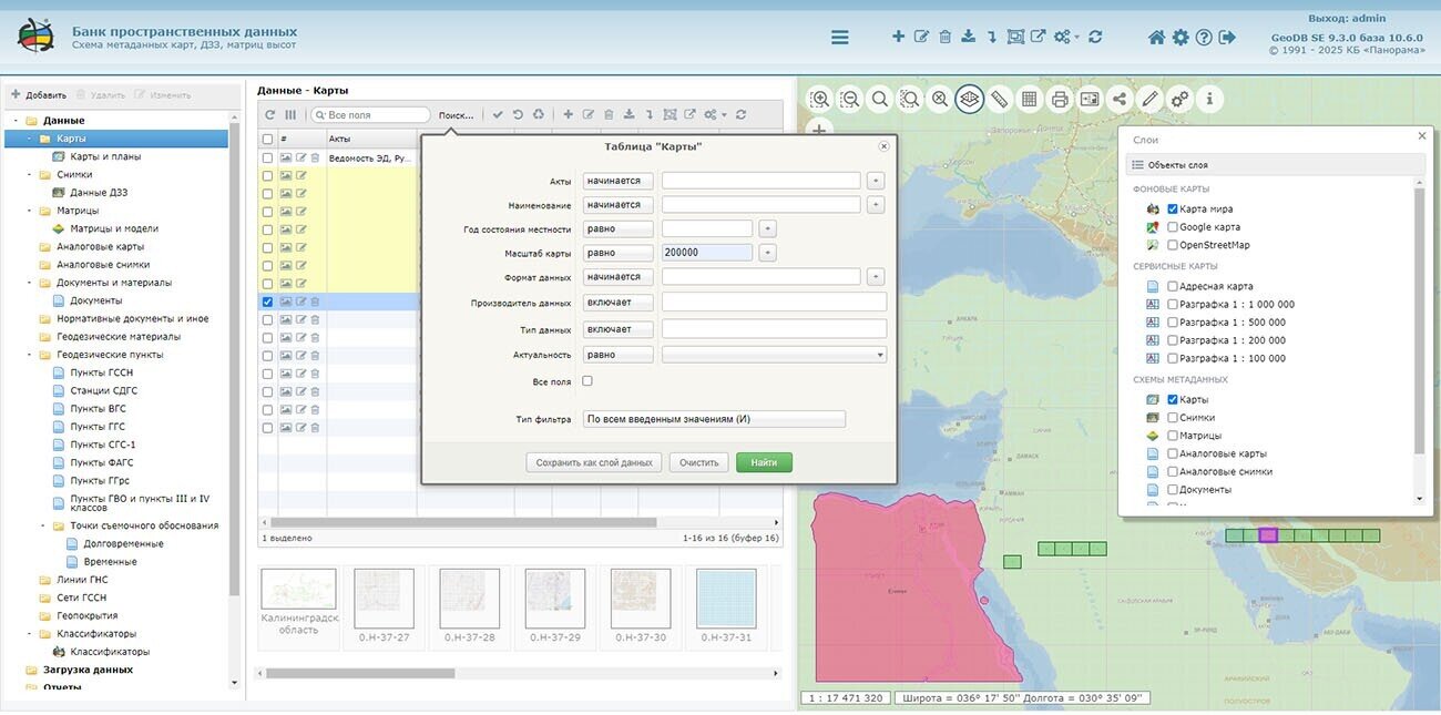 Добавлен новый тип метаданных — ссылка на ранее загруженные документы. Динамически формируются тематические справочники, например, для актов, отчетов, формуляров и сопроводительных документов. Предусмотрен поиск всех файлов, привязанных к конкретному растру, карте или матрице. Поддерживается ссылка на один или несколько документов сразу.