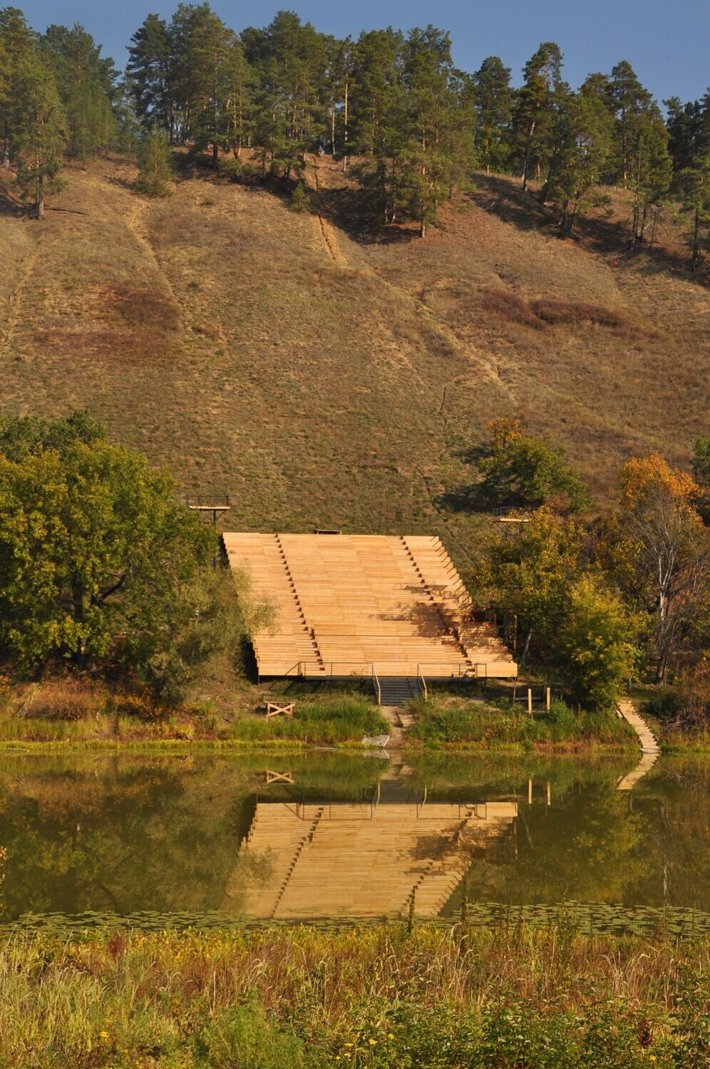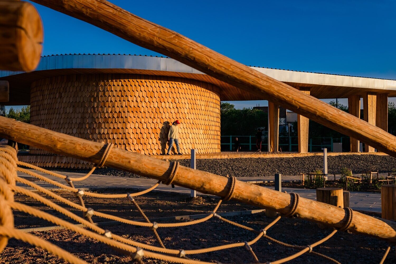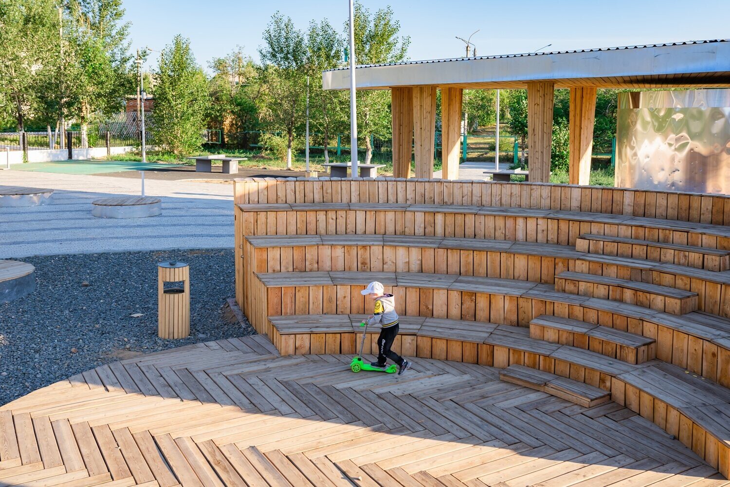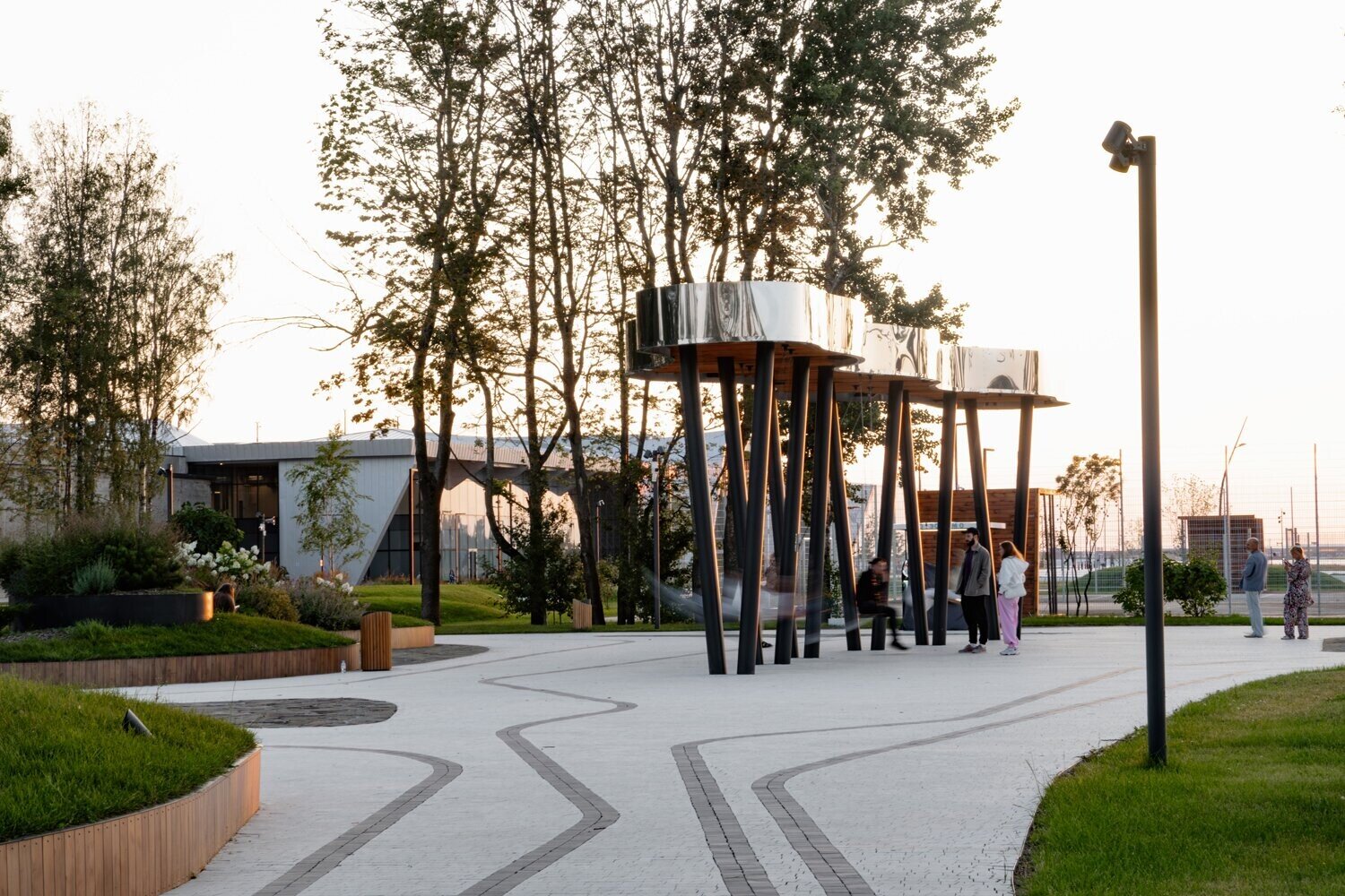 В процессе строительства мы изменили основу площадки — убрали настил и сделали ее словно выходящей из земли.
