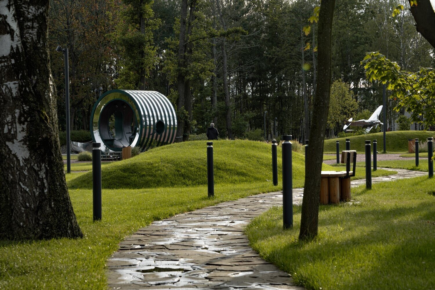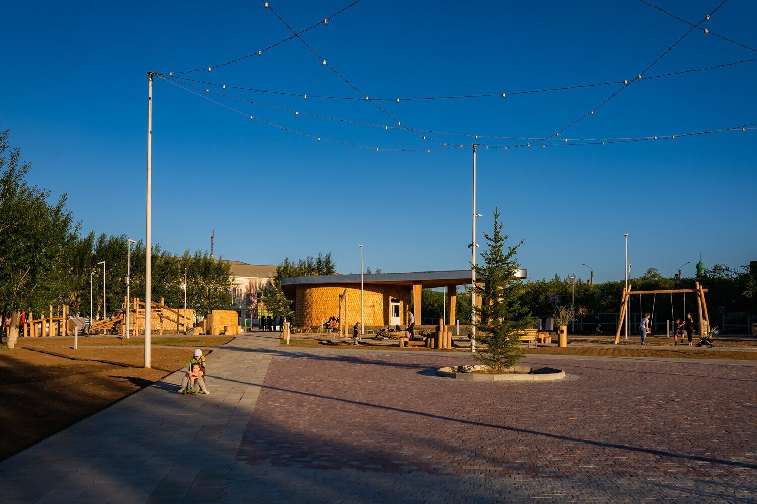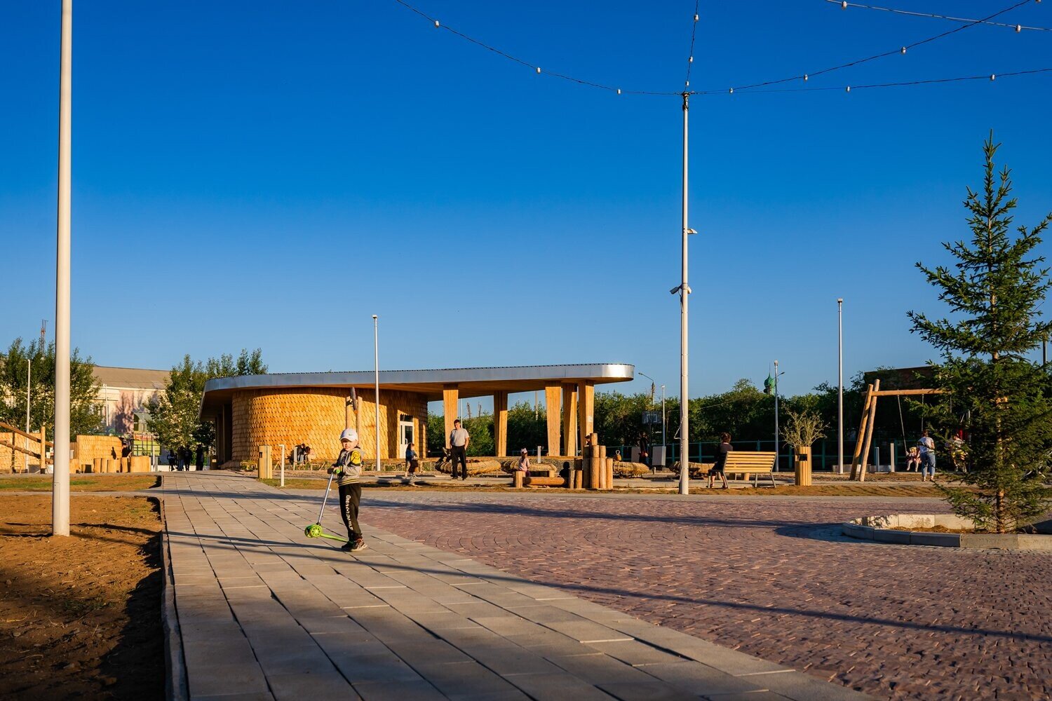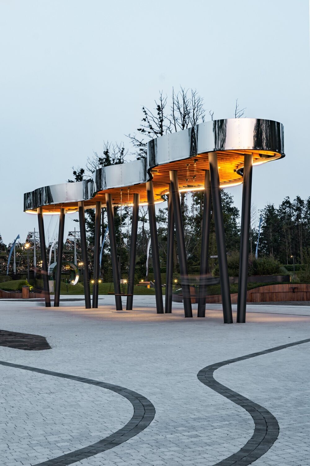 В процессе строительства мы изменили основу площадки — убрали настил и сделали ее словно выходящей из земли.