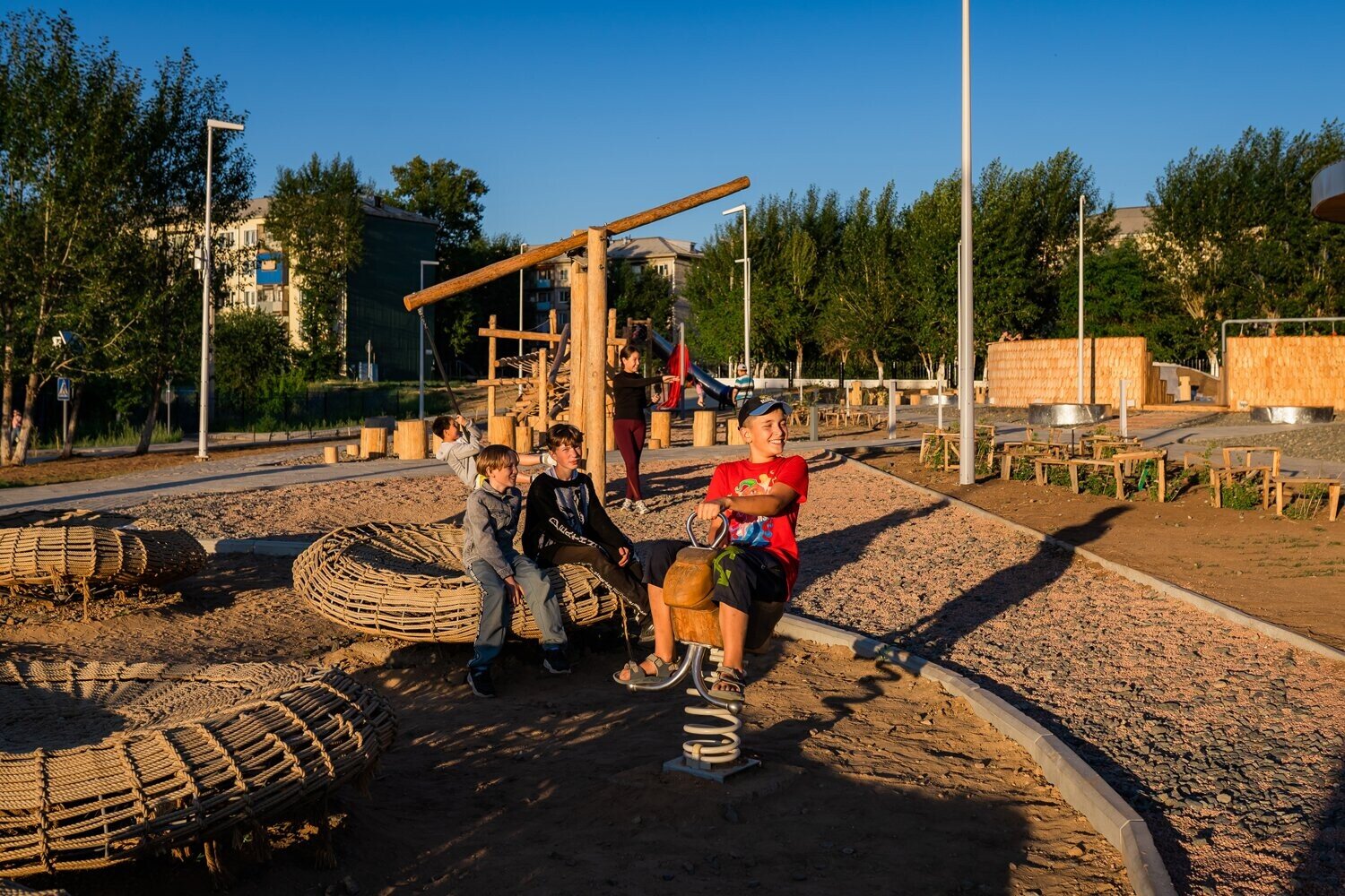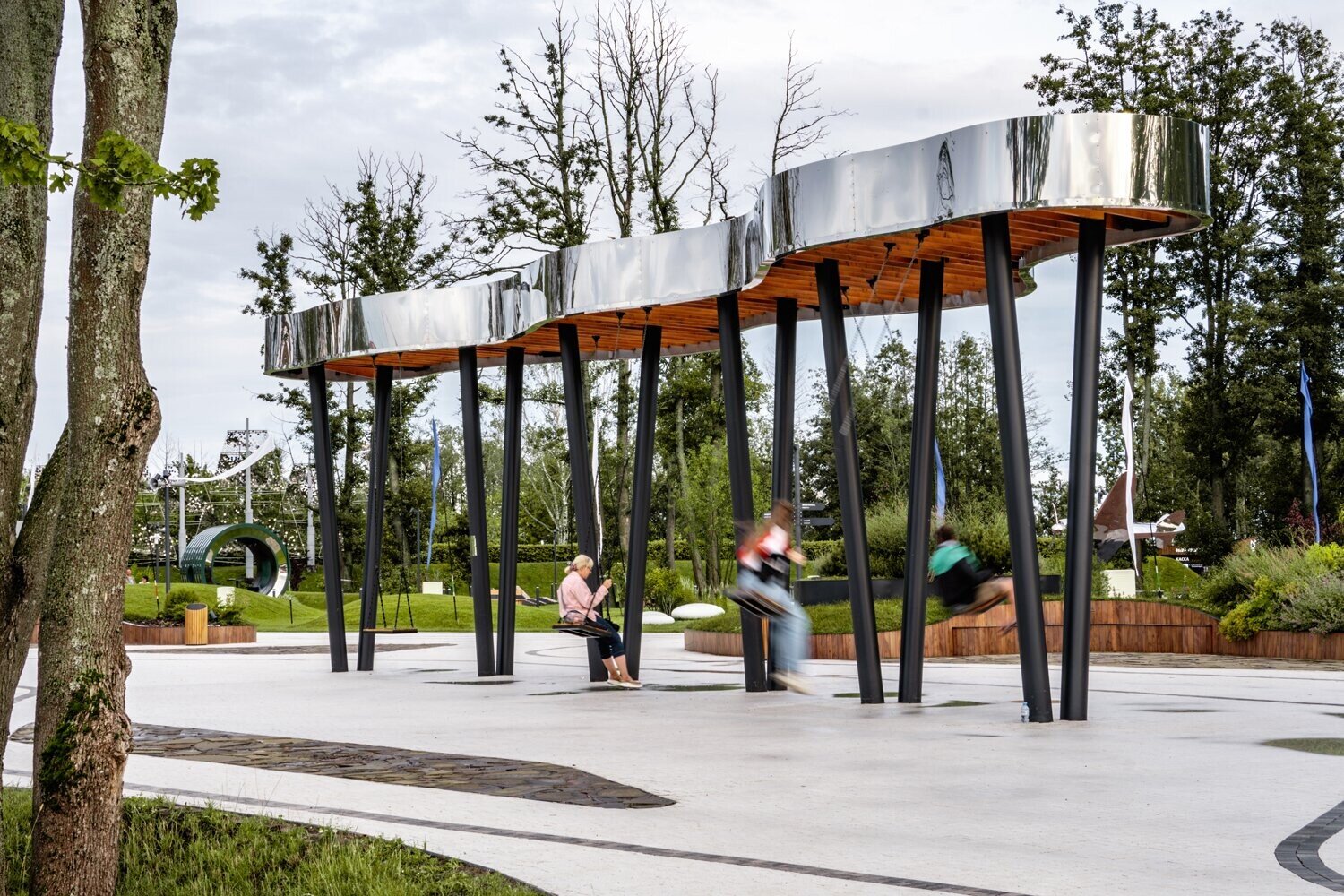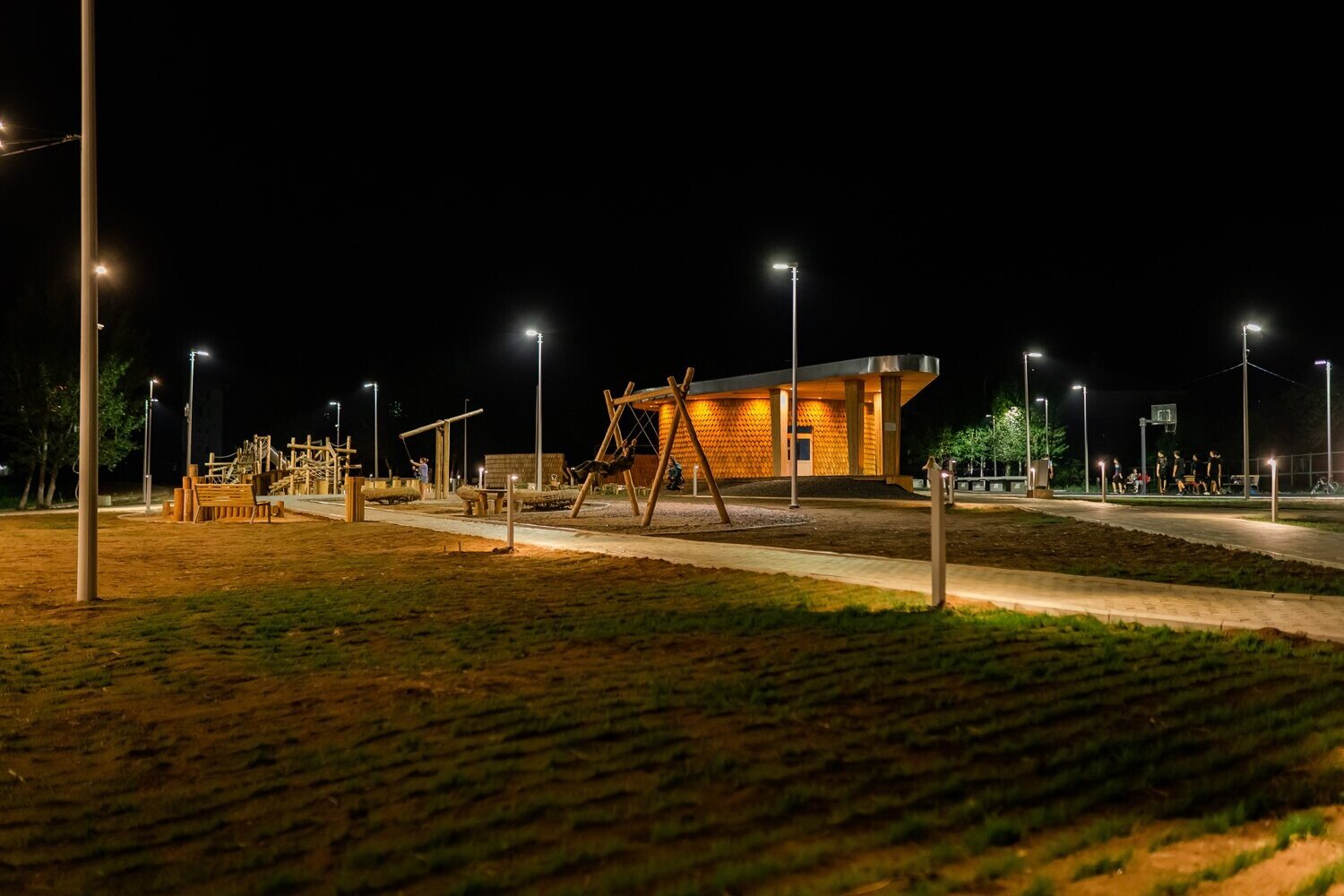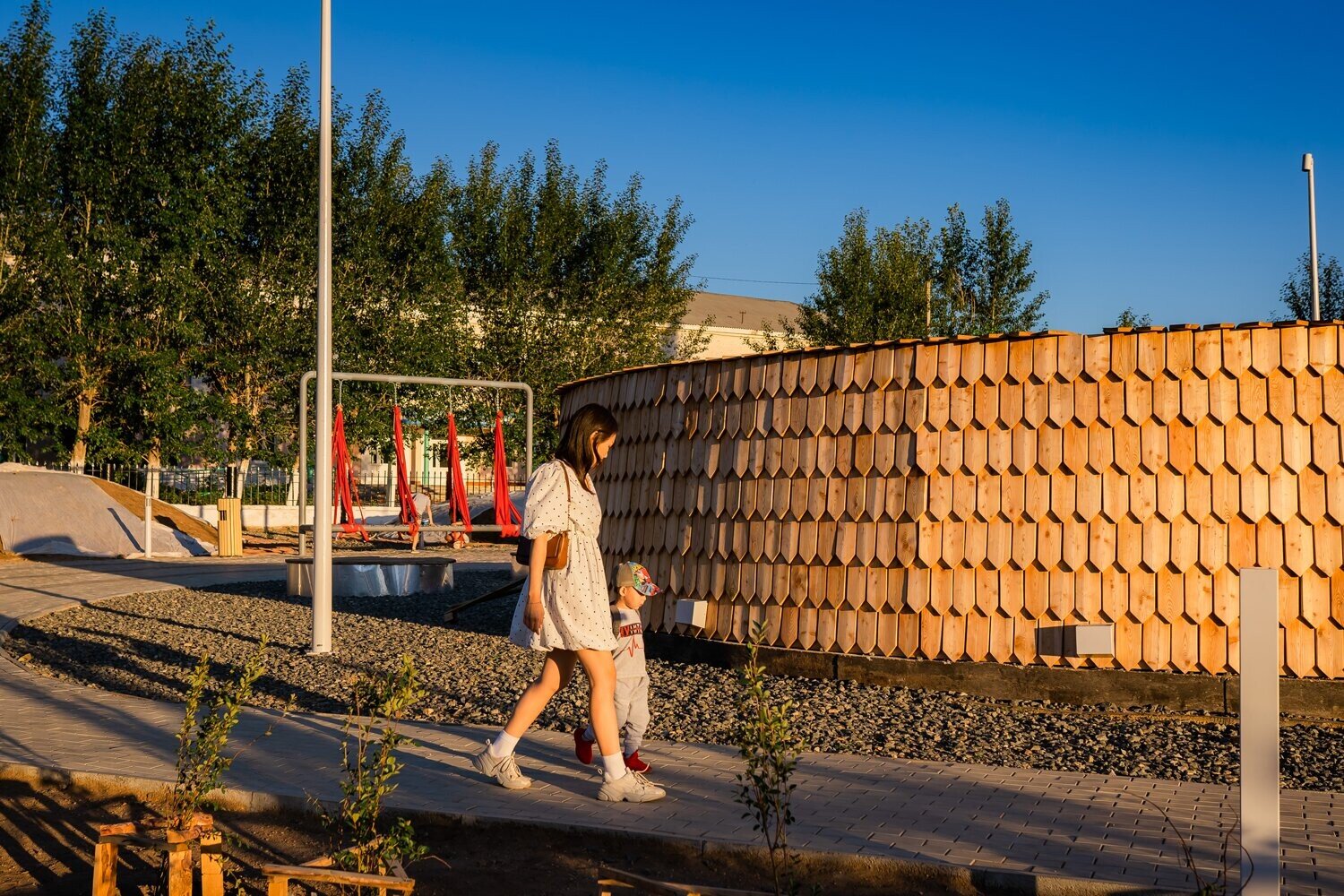В процессе строительства мы изменили основу площадки — убрали настил и сделали ее словно выходящей из земли.