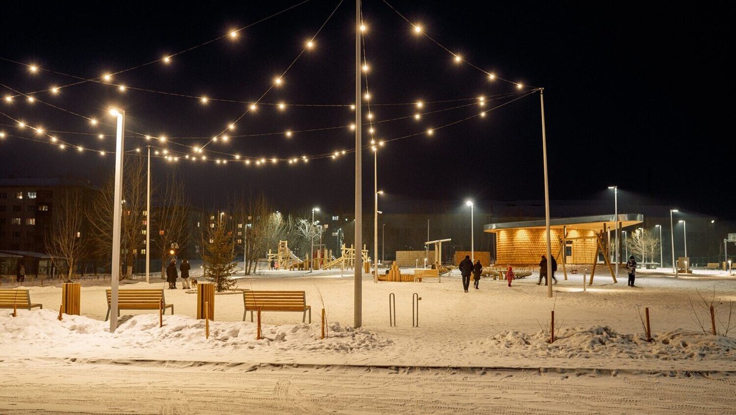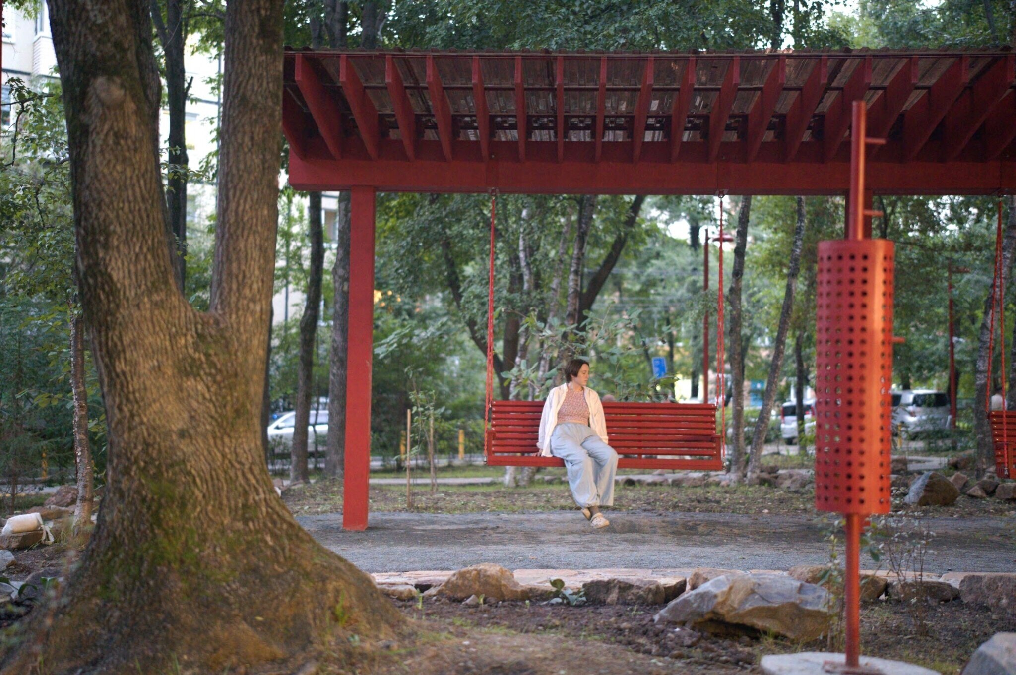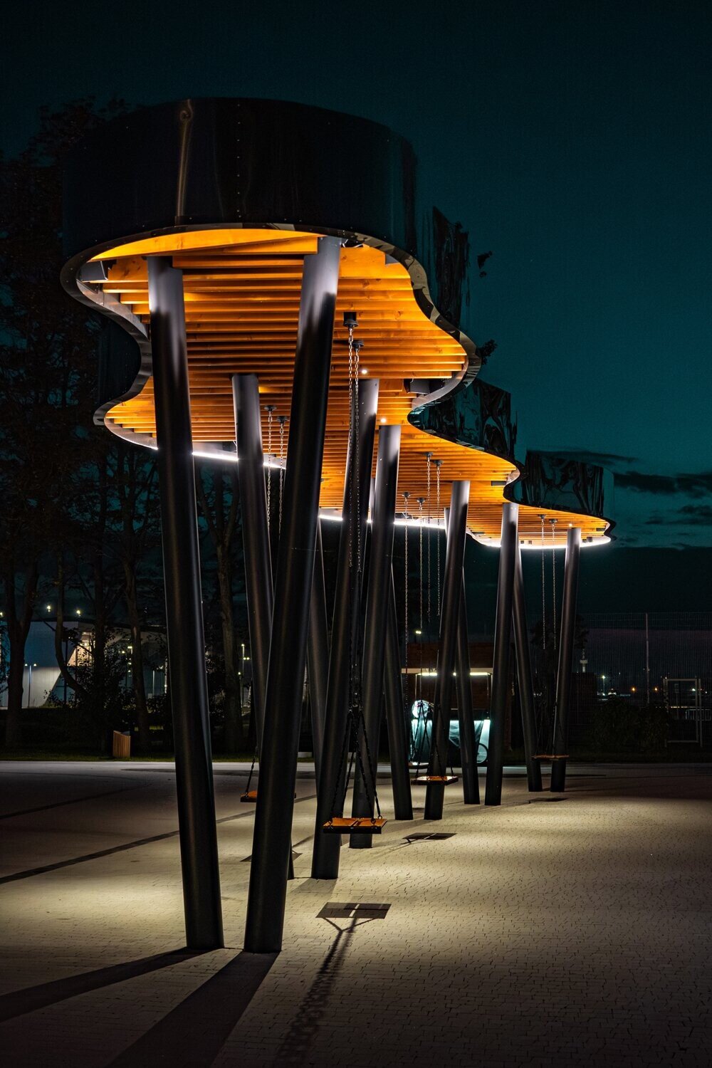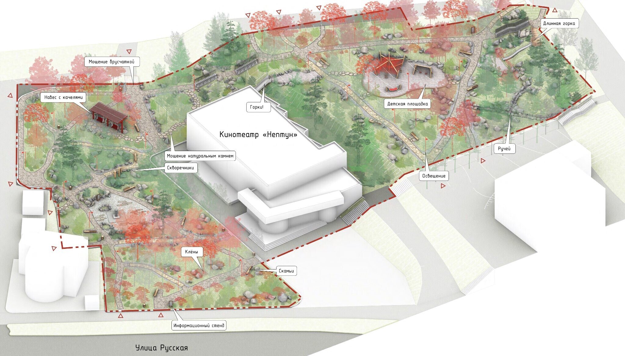 В процессе строительства мы изменили основу площадки — убрали настил и сделали ее словно выходящей из земли.