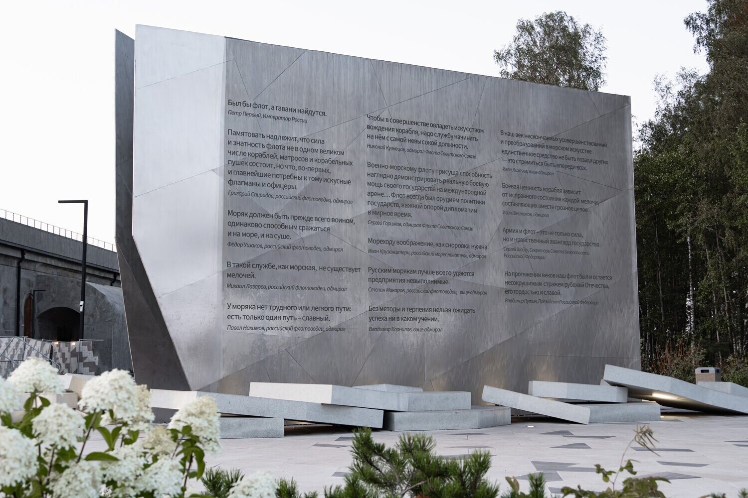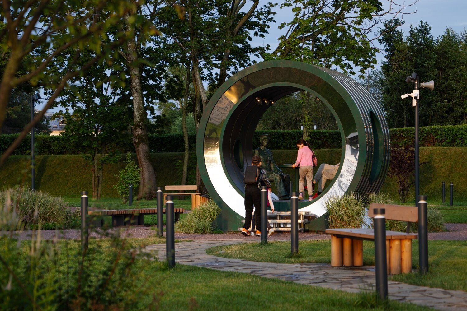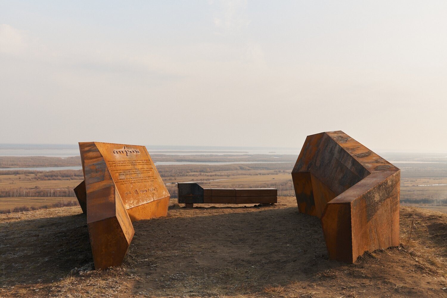 Для реализации выбран кортен — материал, который «стареет красиво» и естественно взаимодействует с климатом. Его поверхность окисляется, образуя патину, похожую на следы времени, ветра и холода.