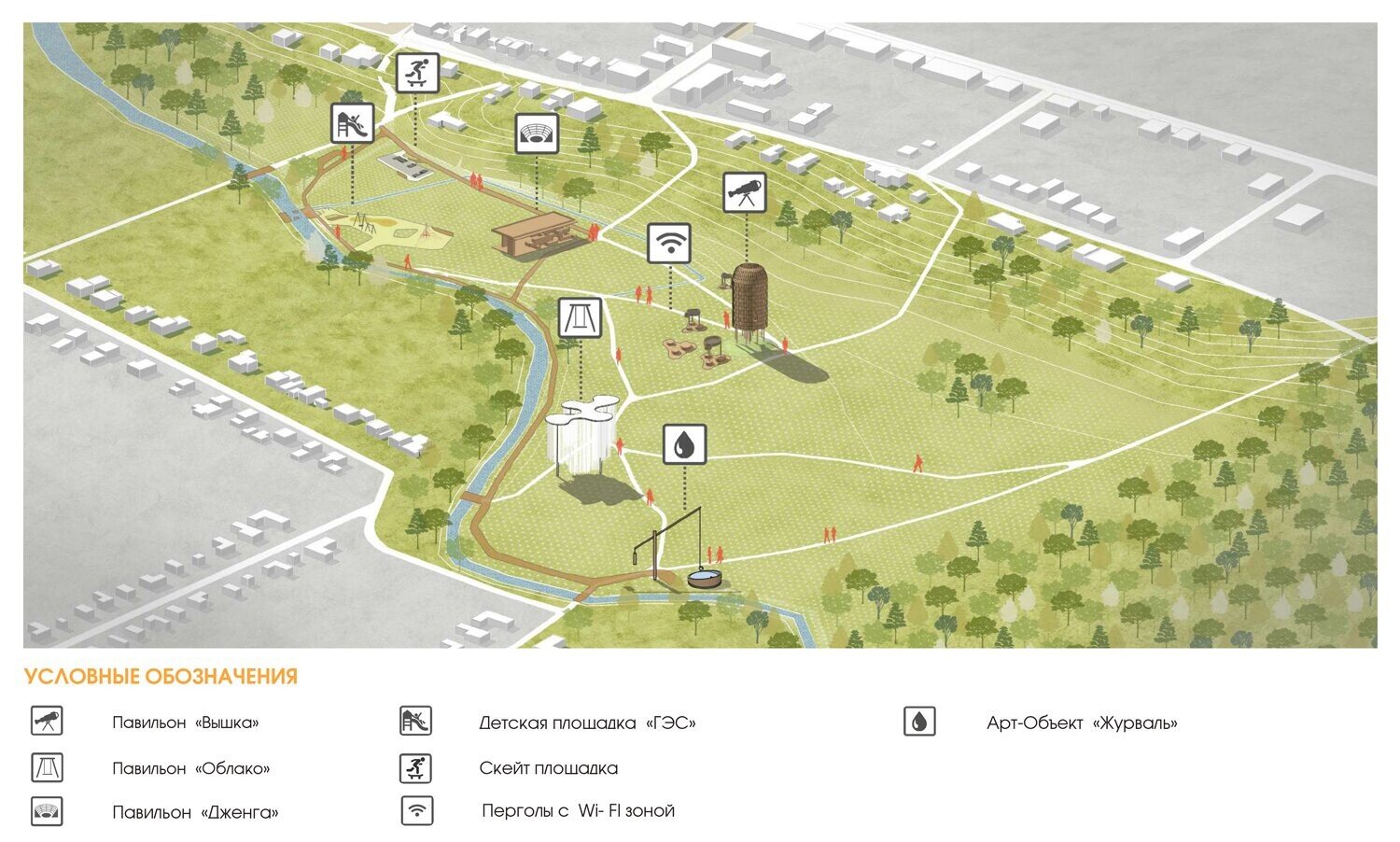 Концепция благоустройства была вдохновлена историей города и его главным символом — гусем. Исторически Гусиноозерск возник из небольших поселений, жители которых занимались сбором гусиных перьев на берегах местных озер, что впоследствии дало название и озеру, и самому городу.