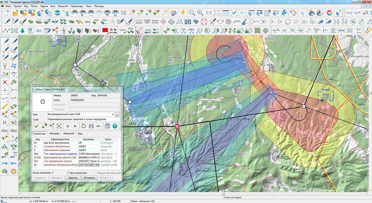 В КБ «Панорама» разработана ГИС «Панорама» версии 15.5.2. В новой версии для создания и применения специальных карт в области аэронавигации и морской навигации добавлена поддержка новых видов объектов и атрибутов: метаобъектов, метаобъектов без метрики, составных атрибутов. Доработаны инструменты для построения списков объектов и выполнения над ними различных операций, расширены параметры запросов в задаче «Поиск территорий по условиям», дополнены средства отображения условных знаков в виде различных типов диаграмм, построения подписей при импорте из формата CSV, добавлена поддержка формата LAS версии 1.5. Добавлены новые инструменты в задачах «Редактор карты», «Геодезический редактор» и при формировании кадастровых документов.