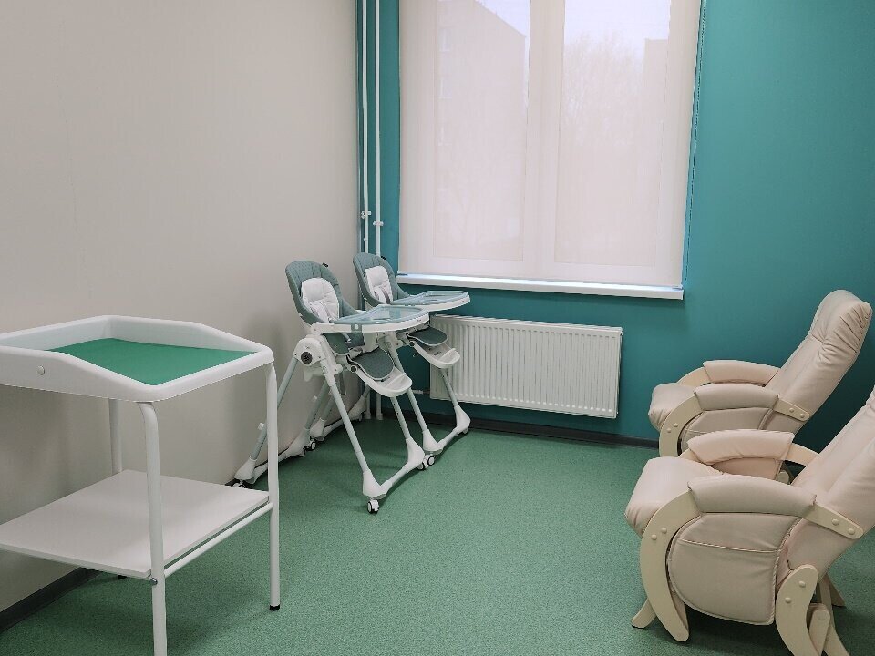 В поликлинике предусмотрено все для удобства жителей. Есть игровая комната для детей, комната матери и ребенка и повышенного комфорта для людей с ОВЗ.