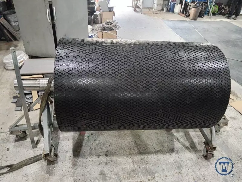 Компания Техмаш произвела приводной барабан диаметром 820 мм и длиной 1360 мм с установленной футеровочной резиной толщиной 8 мм. Барабан служит ключевым элементом привода, обеспечивая стабильное движение транспортной ленты.