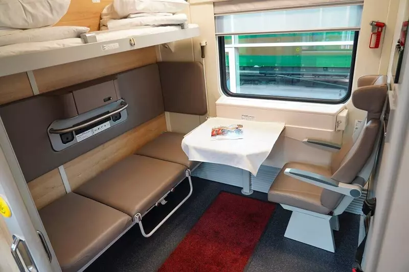 В новом штабном вагоне находятся два четырехместных купе, бытовое помещение и душевая.