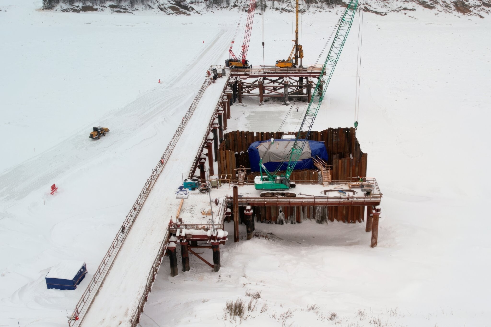 В Бодайбинском районе, который является опорной территорией региона, также при поддержке золотодобывающей компанией «Полюс» продолжается строительство мостового перехода через реку Витим. Сейчас подрядчик возводит русловые опоры. На опоре № 3, 4 идут подготовительные работы для устройства фундаментов, «тело» опоры № 2 готово, забетонировано 450 кубов бетона и смонтировано девять контурных блоков. Работы рассчитаны на четыре года. Их завершат в 2028-м году.