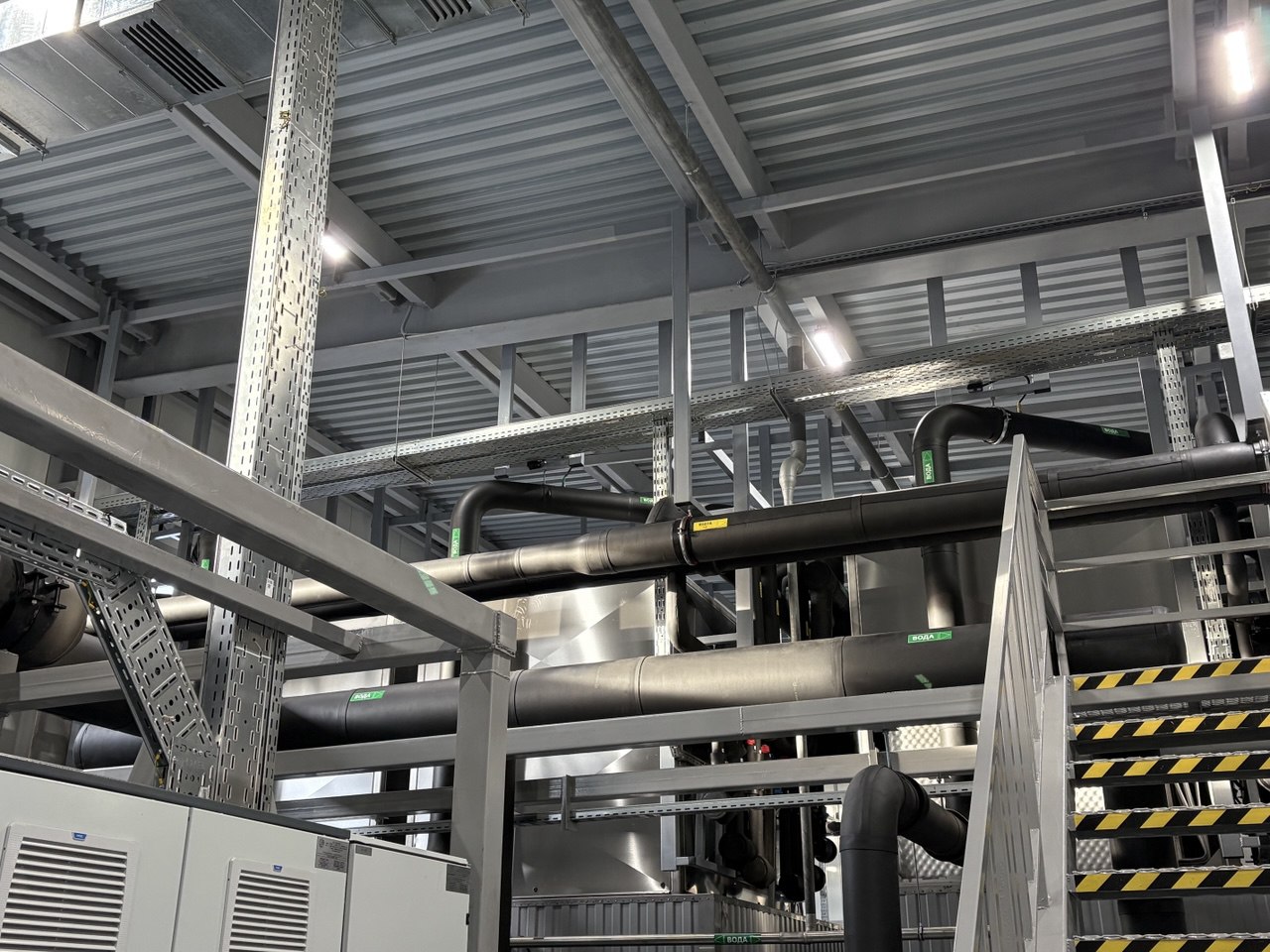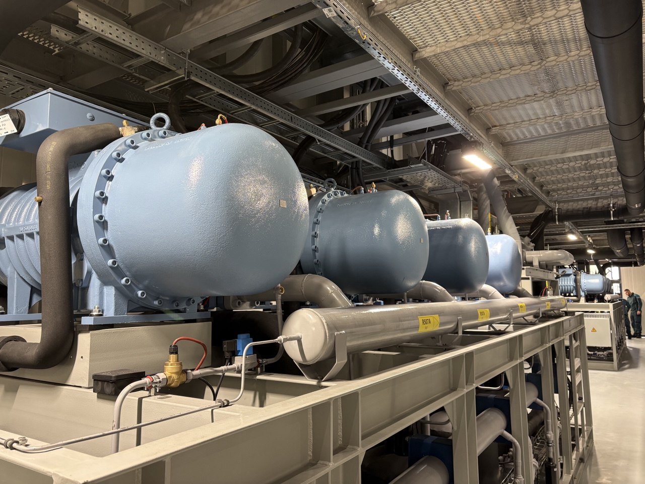 Фреоновая холодильная установка разместилась на территории молочного комбината на площади около 500 кв. метров. Внутри компрессорный цех по производству ледяной воды напоминает огромный компрессор холодильника.