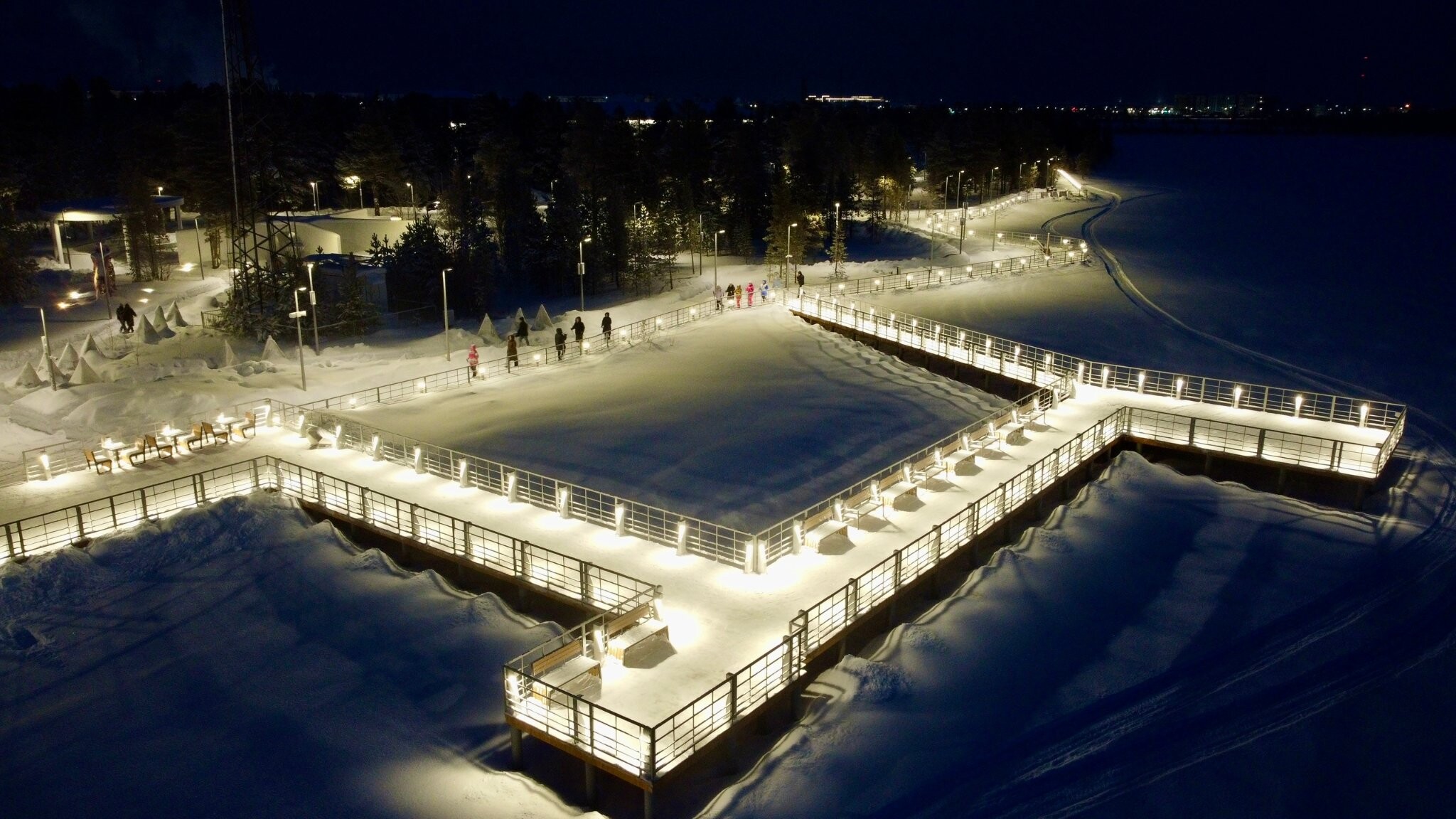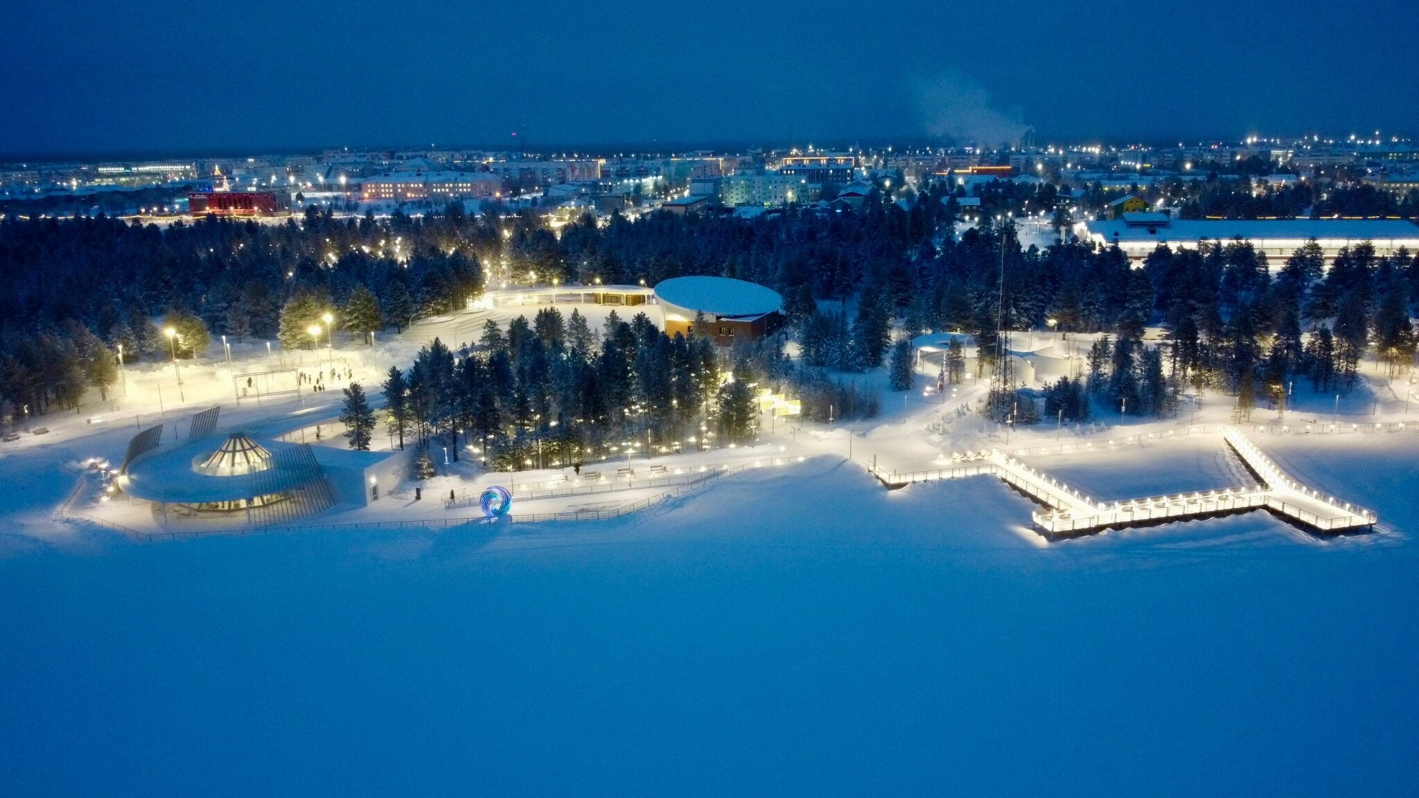 Невероятные ощущения подарит прогулка по новой набережной с истинно ямальским названием «Северная звезда». Всё, что видишь вокруг, — будто сказочное волшебство, и эта магия выглядит так в любое время года. Хрустящий мороз только усиливает красоту зимнего леса в свете множества огней.