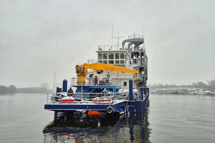 Несамоходный дизельный земснаряд проекта Ц480М2рД/НФ предназначен для разработки песчаных и гравийных карьеров с целью устранения лимитирующих участков и обеспечения гарантированных глубин на внутренних водных путях, добавляют в ГТЛК.