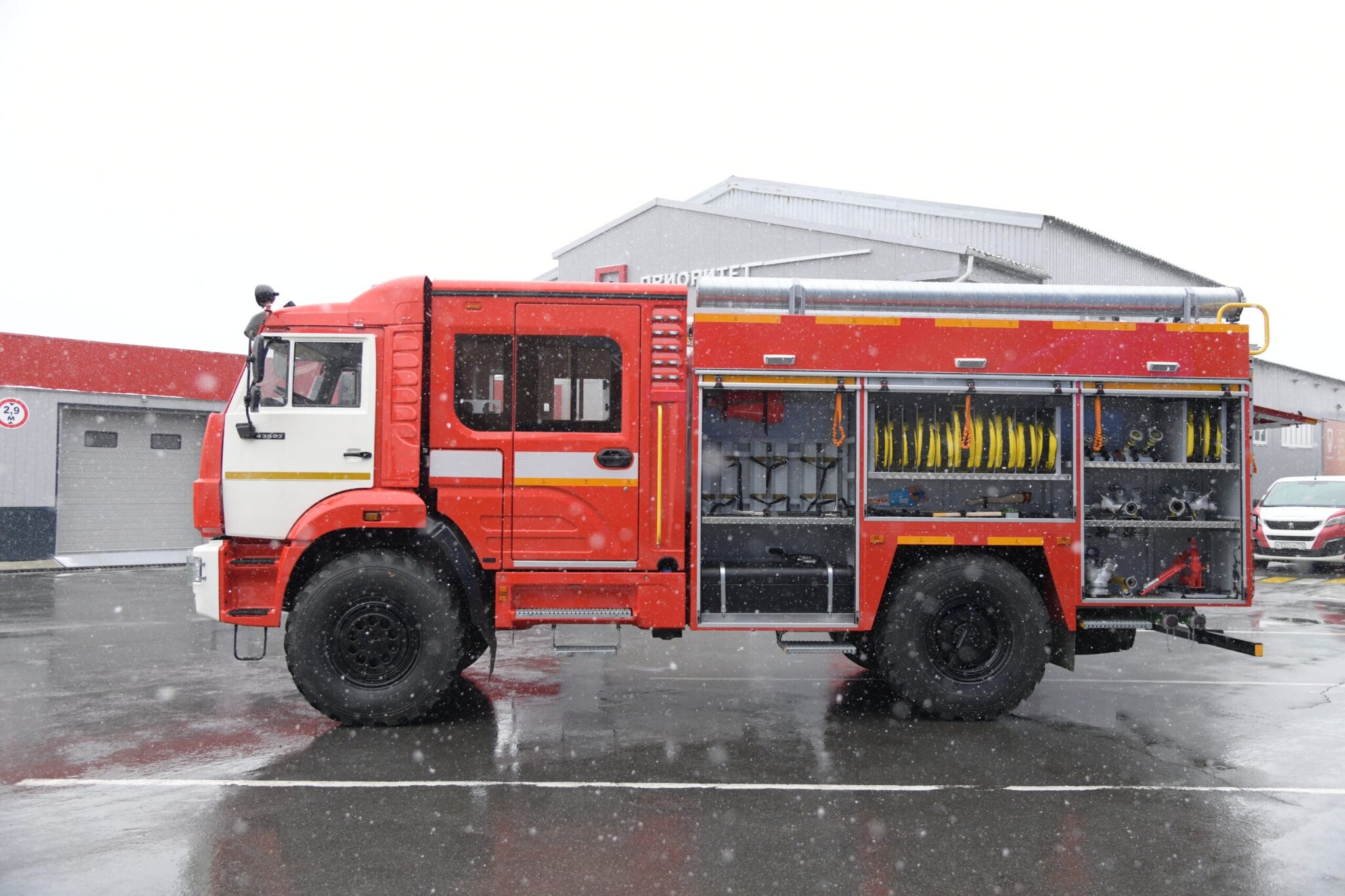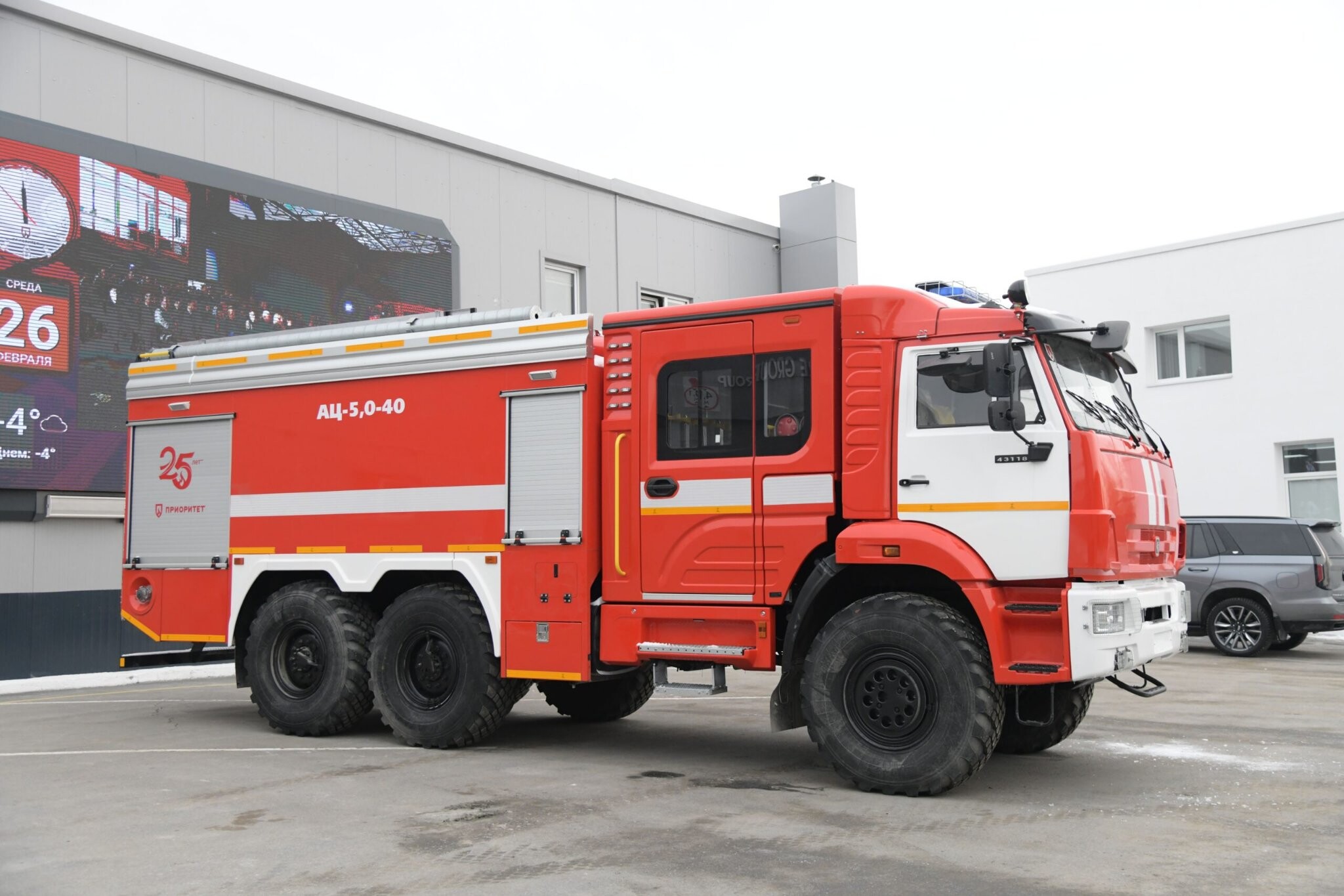 В начале марта 2025 года для одной из крупнейших металлургических и горнодобывающих компаний мираАО «ЕВРАЗ НТМК» состоялась отгрузка новой пожарной автоцистерны АЦ 5,0-40, изготовленной на шасси КАМАЗ 43118.