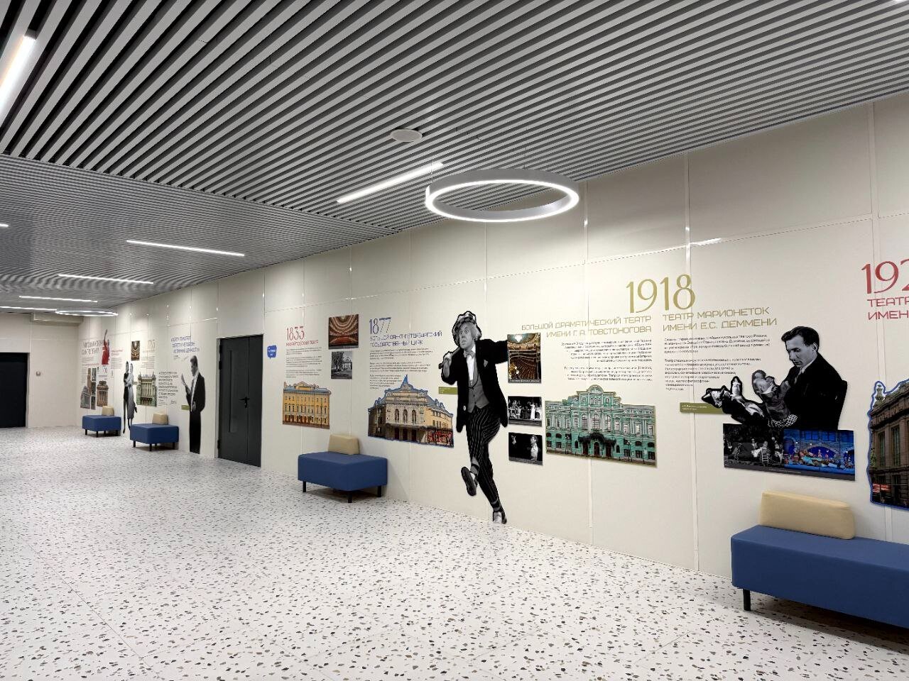 Концепция оформления школы называется «Время Санкт‑Петербурга». Образовательное пространство школы раскроет историю города: его архитектуру, известных деятелей искусства и науки, творивших и живших в Петербурге, историю создания мостов и набережных, а также формирование современного города таким, каким мы его видим сегодня. История каждого острова, на которых стоит город, представлена в уникальном формате. Все это позволит раскрыть самые необычные и неожиданные факты.