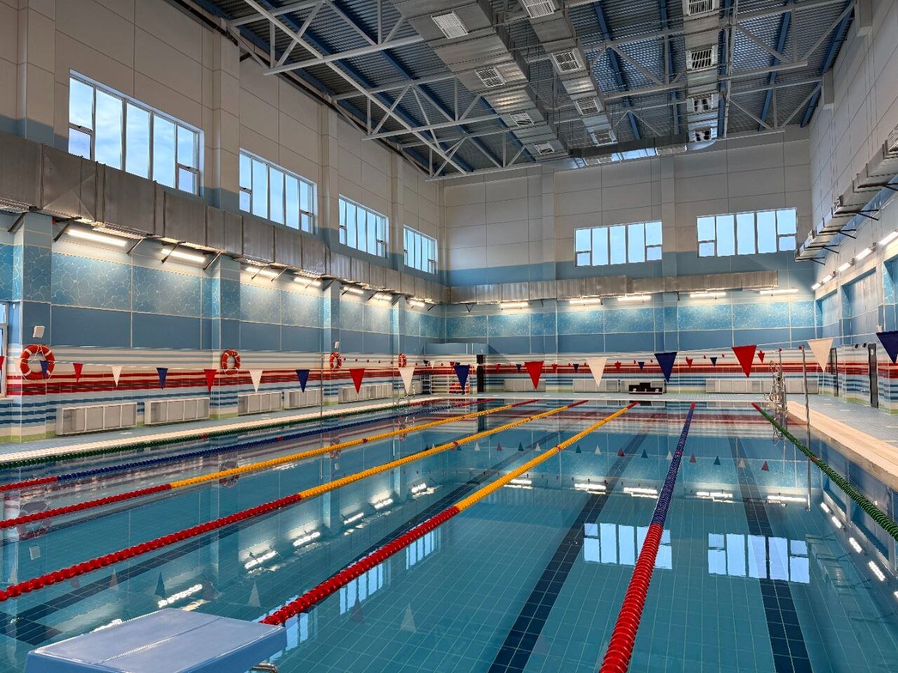Спортивный корпус включает 5 спортивных залов, в том числе хореографический и тренажерный, а также два бассейна, один из которых длиной 25 метров с 6 дорожками. Изюминкой спортивного корпуса стал просторный вестибюль с высоким потолком, большими витражами, парадной круговой лестницей и огромной стеной, на которой будут изображены основные известные даты России в мире спорта и логотип школы. Отдельный вход в корпус и его оснащение позволят проводить соревнования на любом уровне — как городском, так и всероссийском.