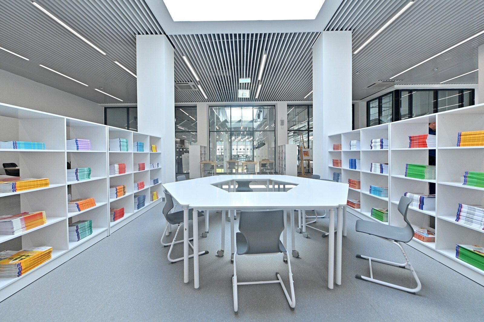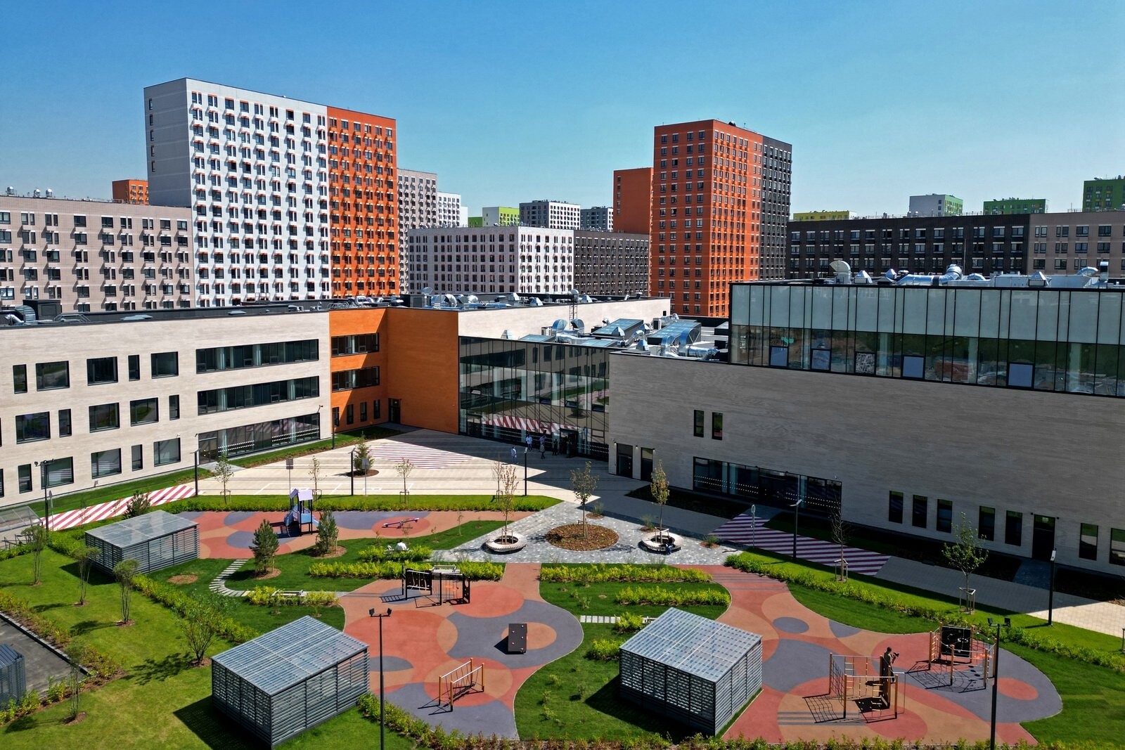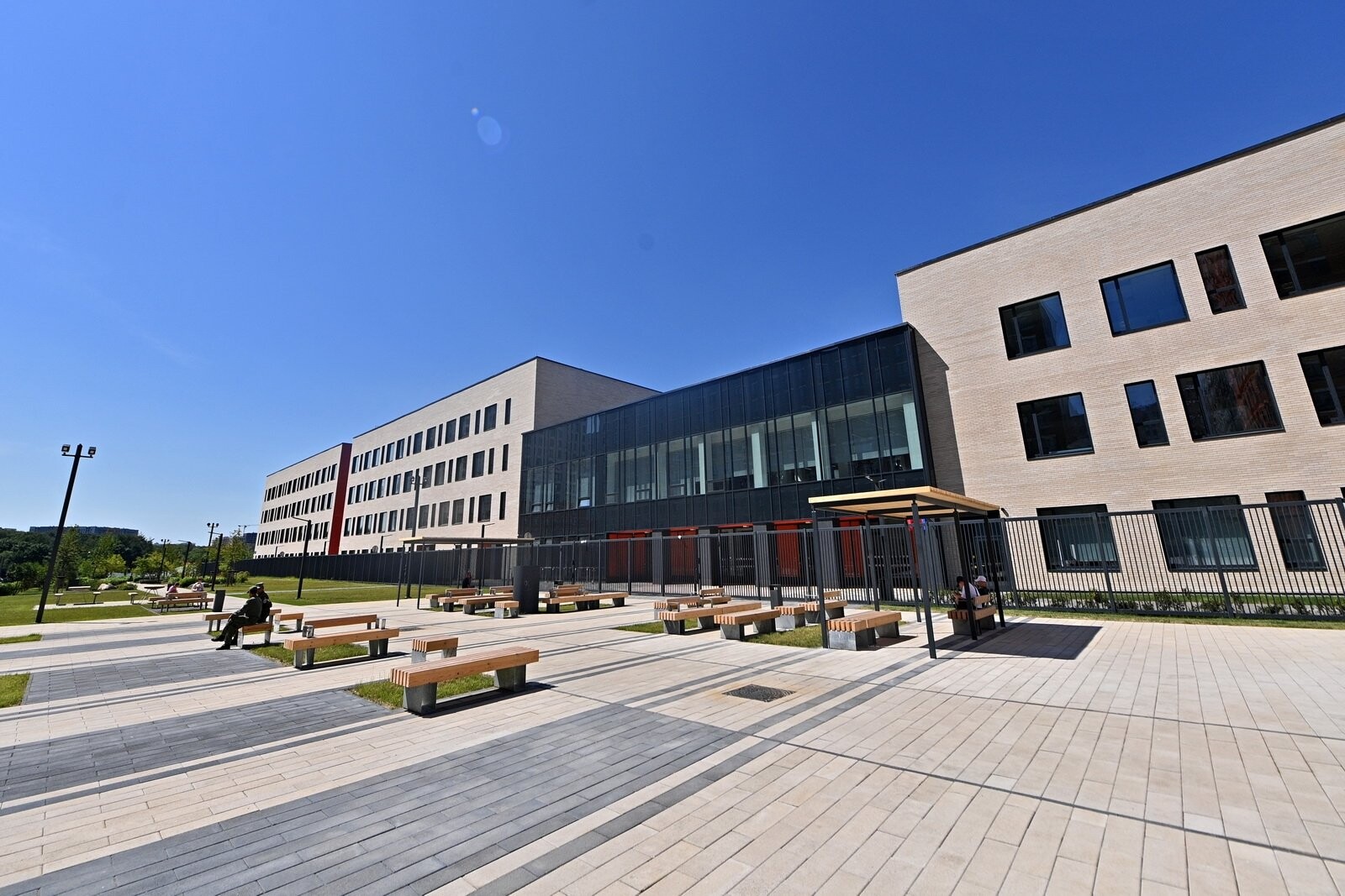Он состоит из нескольких трех- и четырехэтажных блоков и включает подземный технический этаж. В здании создали безбарьерную среду для детей с ограниченными возможностями здоровья, оборудовали универсальные и специализированные кабинеты, лабораторно-исследовательские комплексы, класс робототехники, медиатеку, спортивные залы и многофункциональные пространства.