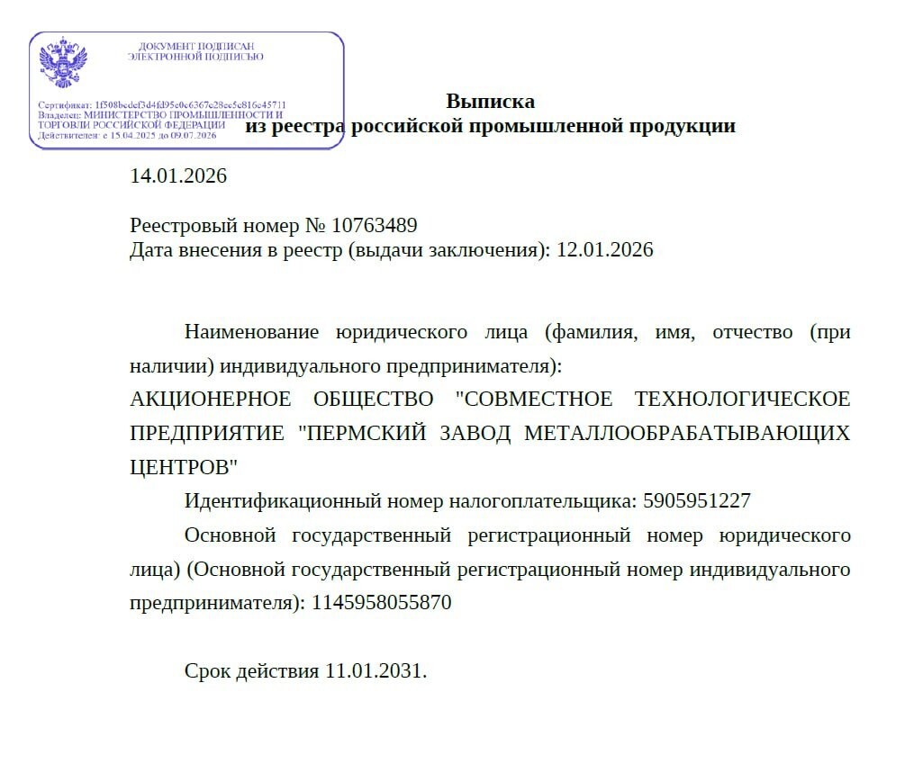 Станок уже включен в реестр ГИСП и полностью удовлетворяет требованиям национального режима. Теперь его можно приобрести через госзакупки по 44-ФЗ и 223-ФЗ.