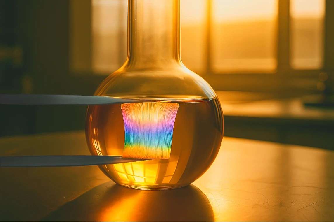 На фото: нановолокна на фоне масла.