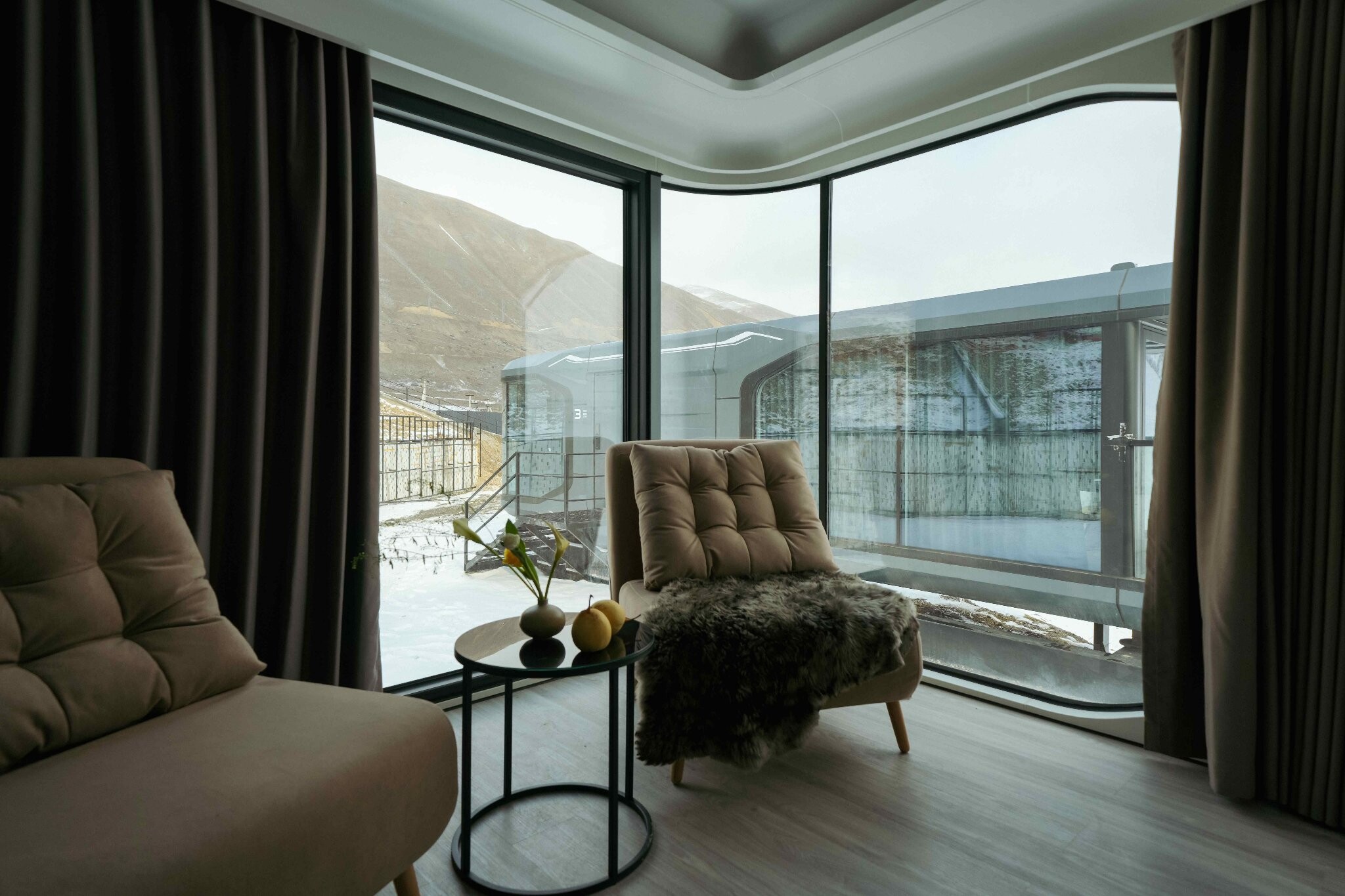 На третьем этаже сервис-центра гостей ждет горный отель «Калак» из 14 комфортных номеров с панорамными террасами. Также значительное расширение произошло в жилом фонде комплекса «Байрай Мамисон». К барнхаусам добавились 14 шале площадью 100 квадратных метров с двумя спальнями, гостиной и сауной.