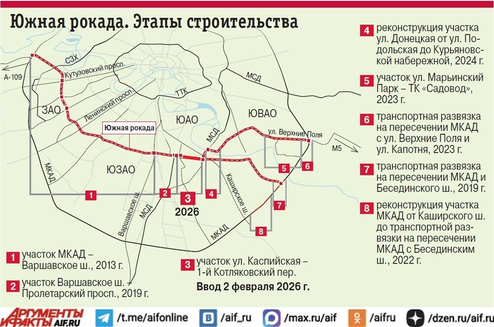 Новые путепроводы на пересечении с МСД завершили основной контур Южной рокады: теперь эта важная транспортная артерия проходит непрерывно через четыре округа столицы и 24 ее района.