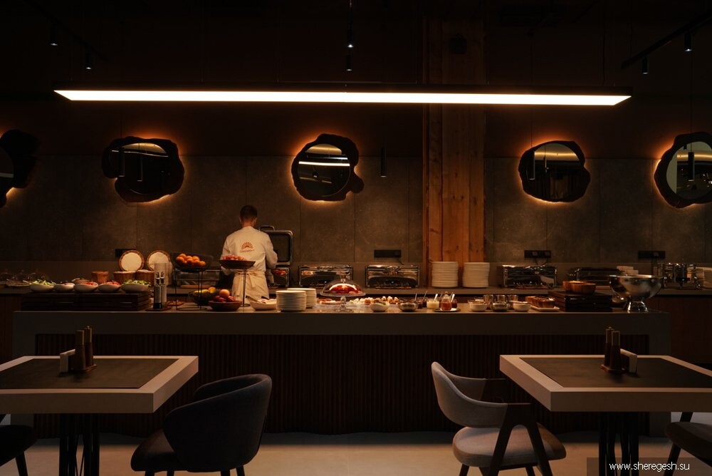 Для оздоровления и релаксации гостей начнут работать две сибирские бани, а летом инфраструктура отеля пополнится термальным комплексом с открытым всесезонным бассейном, хаммамом, русской парной и саунами, фитобаром, кабинетами для физио- и спа-процедур, зонами отдыха.