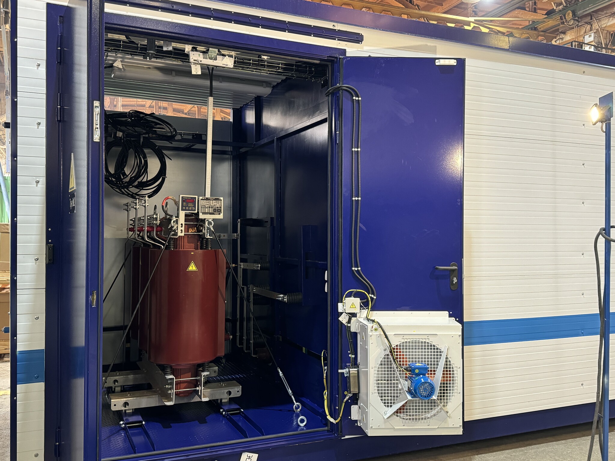 Комплектация подстанции отвечает современным требованиям надёжности и безопасности. Распределительное устройство высокого напряжения (РУ-10 кВ) выполнено на базе камер КСО-203 Union с вакуумными выключателями производства АО «ПО «Элтехника». Релейная защита реализована на микропроцессорных блоках «Алтей». На стороне низкого напряжения (РУ-0,4 кВ) установлены низковольтные комплектные устройства НКУ ШН Alion с 4b-секционированием и автоматическими выключателями Hyundai. В составе подстанции — два масляных трансформатора мощностью по 630 кВА производства «СВЭЛ». Шкаф собственных нужд оснащен источником бесперебойного питания (ИБП) мощностью 3000 ВА и двумя вводами с автоматическим вводом резерва (АВР).