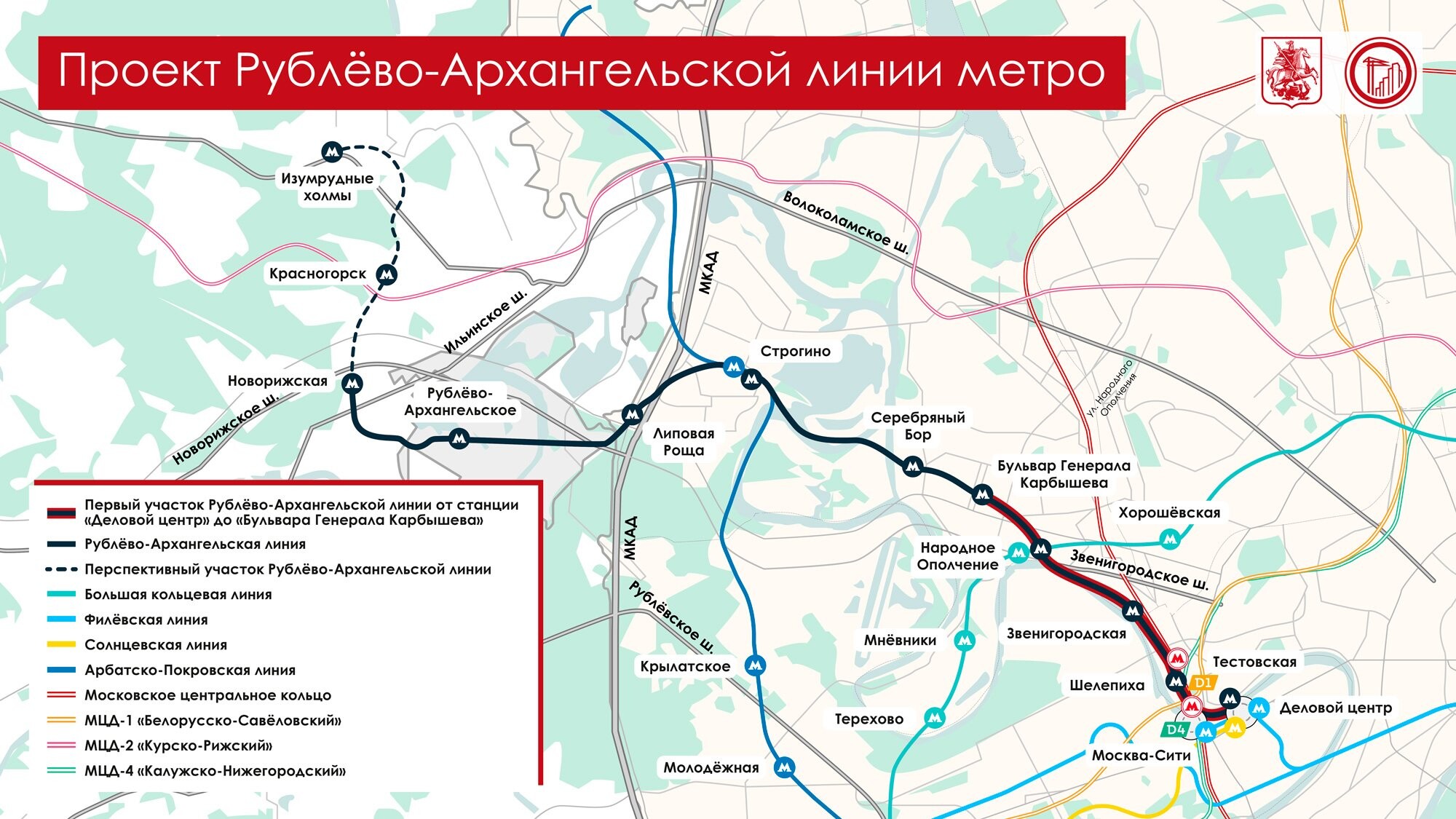 Строительство Рублево‑Архангельской линии метро находится в самом разгаре. В этом году откроют первые пять станций от «Делового центра» до «Бульвара Генерала Карбышева».