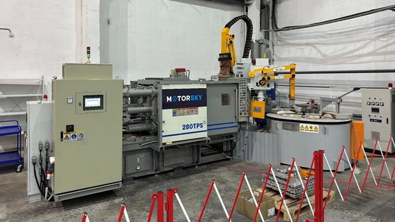 Процесс литья алюминиевых корпусов и деталей был полностью роботизирован с помощью машины литья под давлением с усилием 280 тонн.
