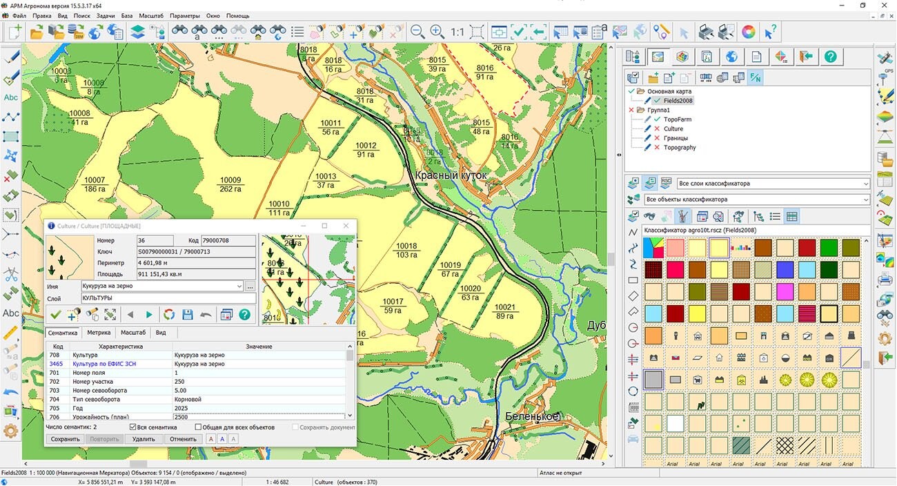 В программе особое внимание уделено построению логических связей между объектами и контролю целостности данных. В диалоге редактирования семантики добавлена возможность создания связанных метаобъектов по ссылкам типа GUID. Это означает, что агроном может не просто указать наличие оборудования на поле, но и сразу создать его карточку с полным набором параметров, будь то скважина, насосная станция или метеодатчик. Такой подход формирует единую структуру данных хозяйства, где каждый элемент имеет свою детальную информацию и тесно связан с местностью.