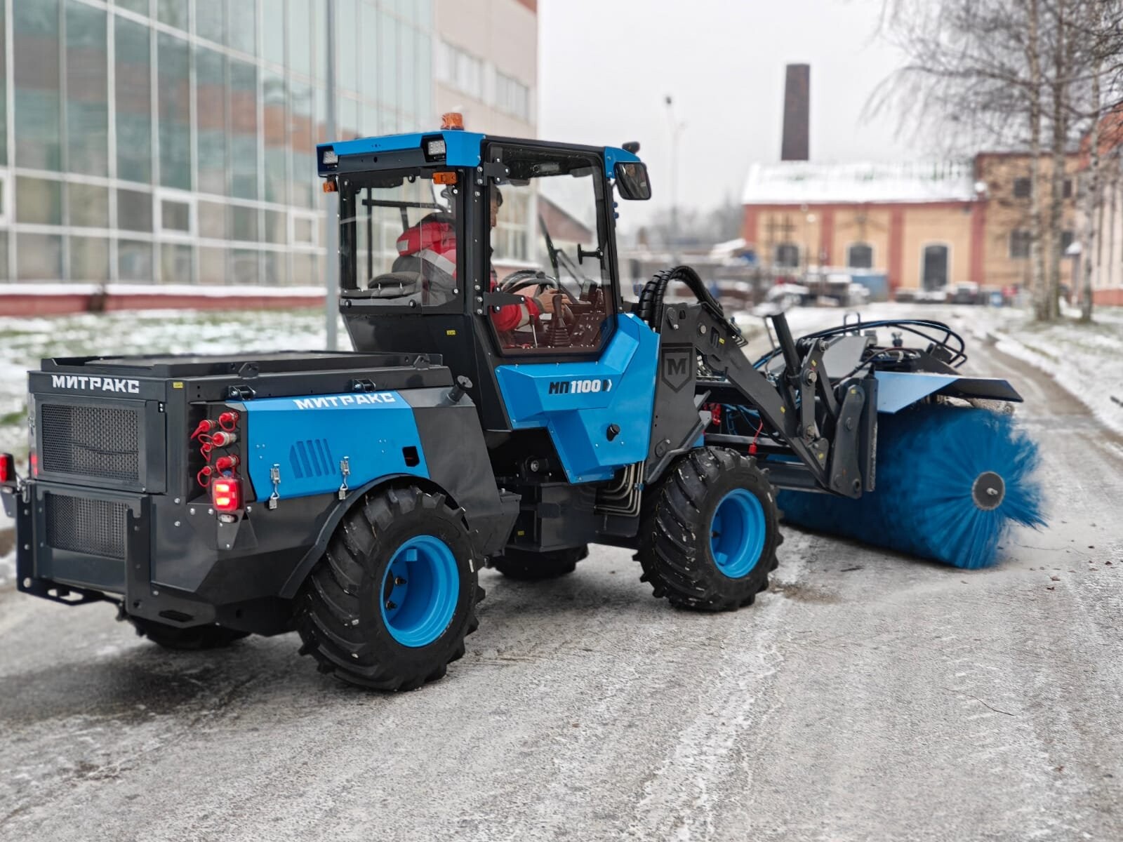 Новая российская коммунальная машина для уборки дорог-Митракс 1100, аналог погрузчика Wille.