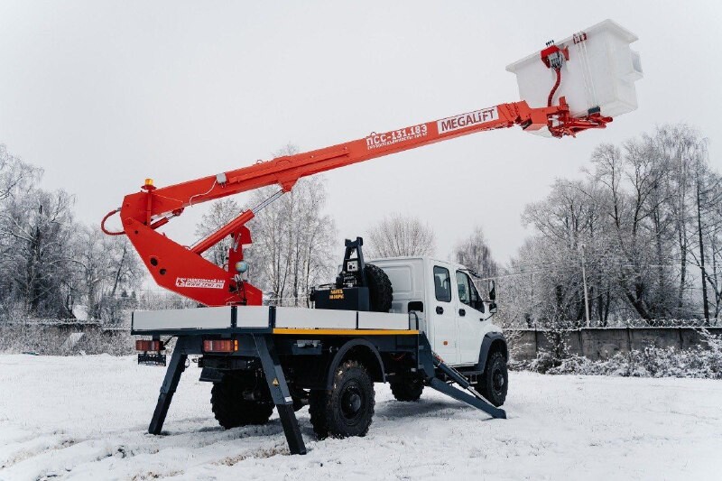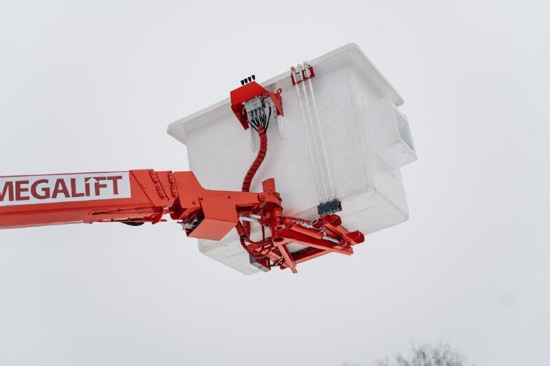 Корпус изготовлен из армированного стеклопластика (композит на основе стеклоткани и полимерной смолы). Материал в 4-5 раз легче стали, что снижает нагрузку на стрелу и повышает устойчивость техники. Стеклопластик не подвержен коррозии, устойчив к агрессивным средам и не требует регулярной покраски, что увеличивает срок службы изделия. Грузоподъёмность платформы составляет 250 кг, что позволяет разместить двух специалистов с инструментом.