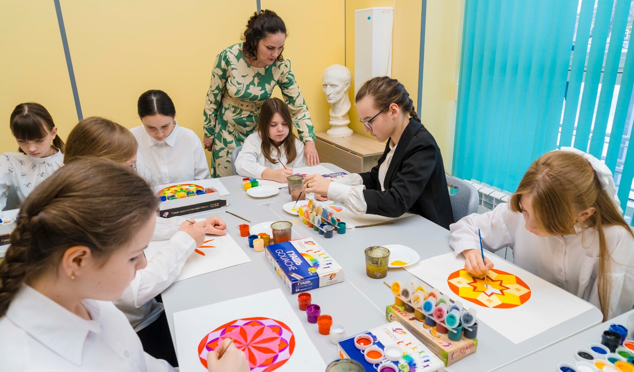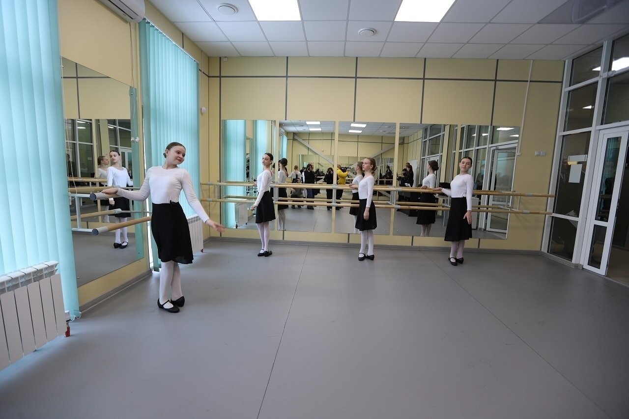 Площадь нового дворца — почти тысяча квадратных метров. В здании — свое выставочное пространство, мастерские для работы с глиной и гипсом, муфельная печь для обжига, просторные классы для хореографии. И главное — новый инструментарий: четыре пианино, кабинетный рояль, целые комплекты для народного и духового оркестров.