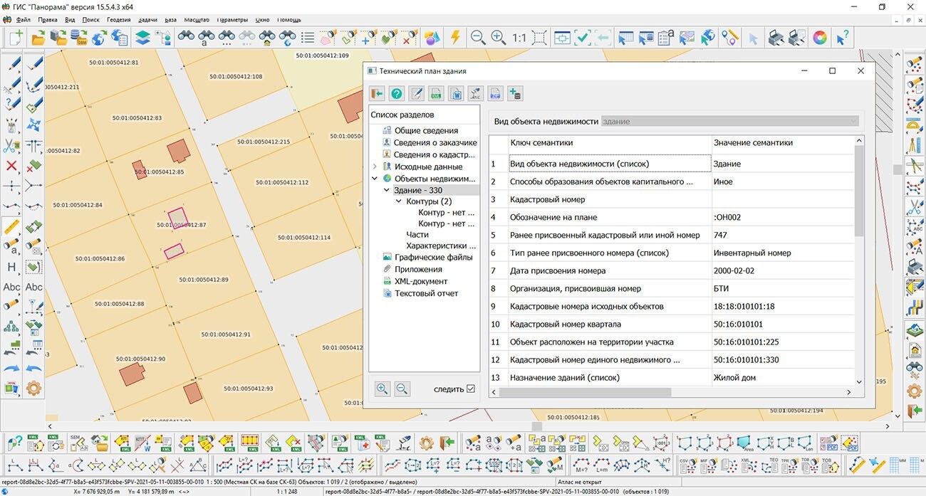 Для режима «Технический план» изменен порядок использования сведений о площади объекта недвижимости по документам для многоконтурных объектов. Добавлен расчет суммы площадей по всем контурам. Если семантика AREADOC у контура не заполнена, то берется площадь объекта на карте. При формировании отчета исправлен тип графических файлов для раздела «Схема расположения». При формировании XML узел OtherParentCadastralNumbers заполняется из семантики KADNUM_ENK.