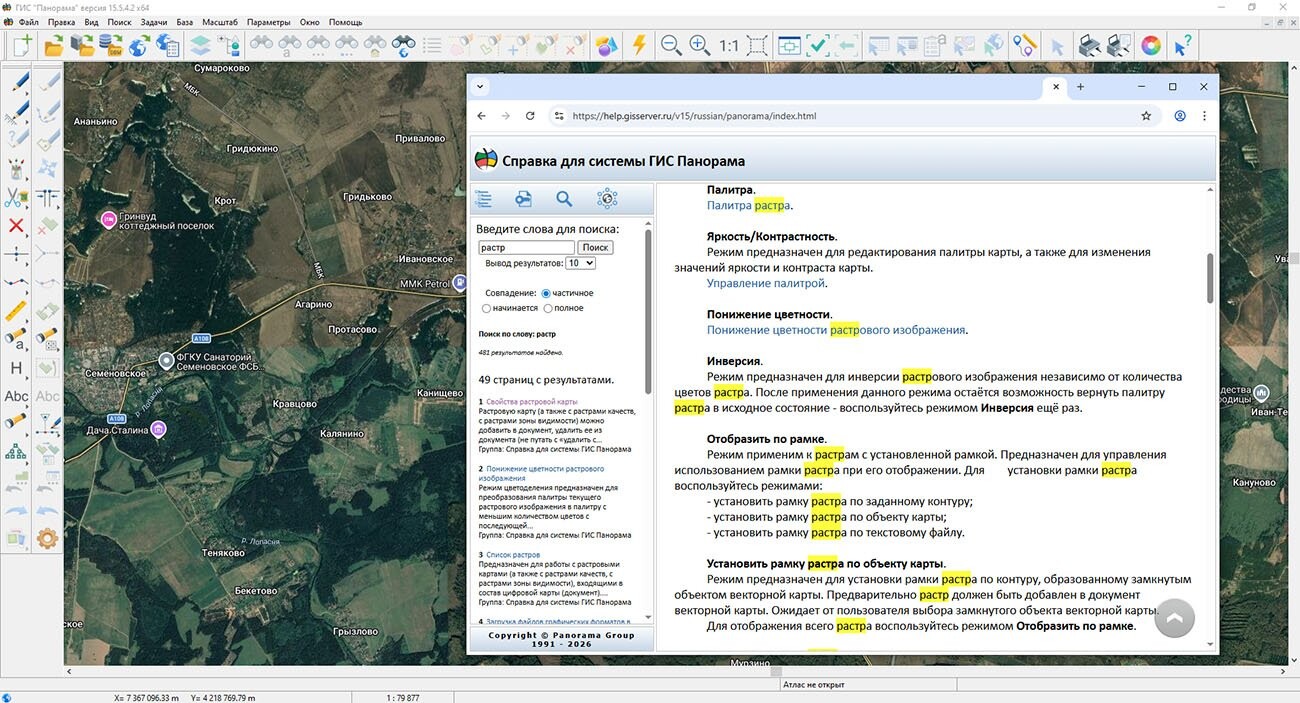 В КБ «Панорама» разработана ГИС «Панорама» версии 15.5.4. В новой версии расширены протоколы и форматы данных подключаемых геопорталов, обеспечивается быстрое открытие проектов большого объема без задержек на чтение данных, улучшена поддержка топологических отношений объектов при редактировании векторных карт, обеспечен просмотр свойств и обмен данными сразу между несколькими объектами карты через диалоги «Свойства объекта». Дополнены настройки формирования пояснительных подписей свойств объектов на специальных картах, система помощи Help выполняет сквозной поиск разделов по ключевым словам среди всех прикладных задач и диалогов. В блоке геодезических задач доработаны инструменты геодезических построений и формирования схем и отчетов, в блоке кадастровых задач дополнены средства формирования технического плана, кадастрового плана территории, схемы расположения участка и другие.