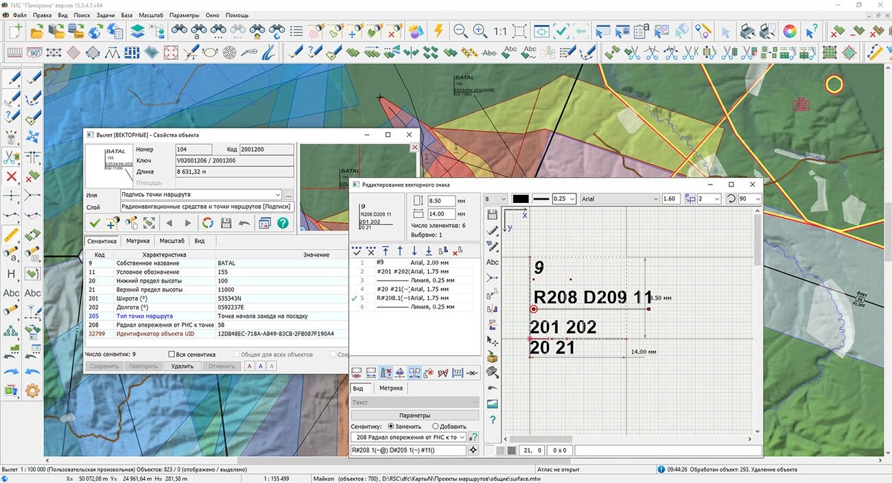 Доработано отображение подписей в векторных знаках. Подпись может содержать постоянный текст или текст, формируемый по семантической характеристике знака. Для указания ссылки на семантику используется знак «#", например «#9(noname)» — ссылка на семантику с кодом 9, в случае отсутствия такой семантики отображается текст в скобках — «noname». Новая реализация позволяет в скобках указывать коды альтернативных семантик: «#9(#91|#92|текст)». Такая запись позволяет в первую очередь отображать Собственное название (код 9), при отсутствии семантики 9 — Название на английском языке (код 91) или Название на национальном языке (код 92).