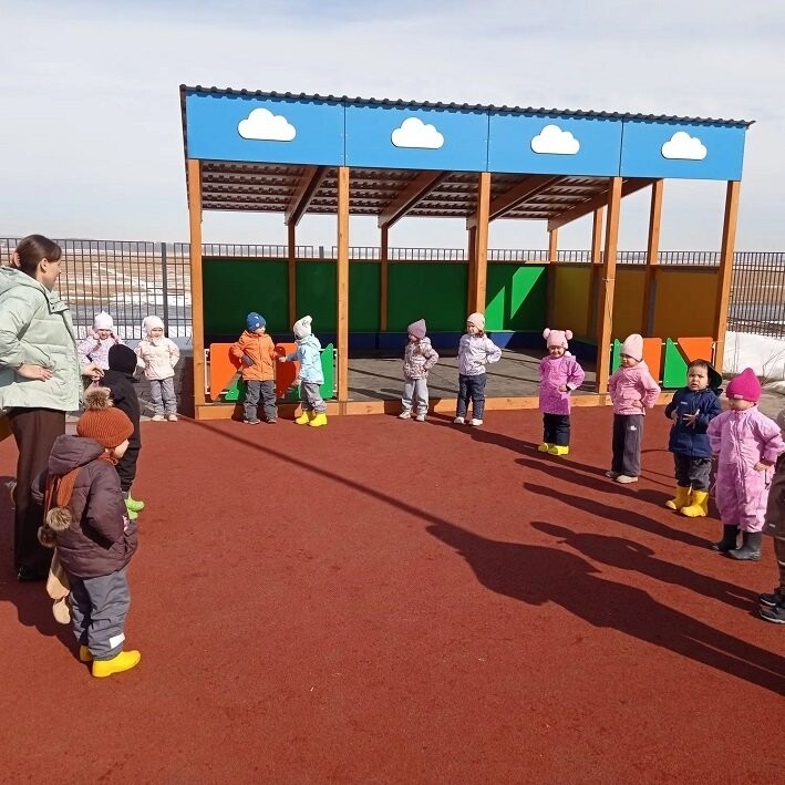 На одной из площадок на свежем воздухе резвятся малыши из группы «Лесная сказка». Их воспитатель Валентина Хасанова рассказывает, что она вернулась в профессию, узнав об открытии нового детского сада.