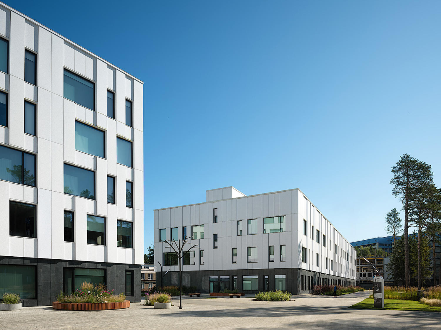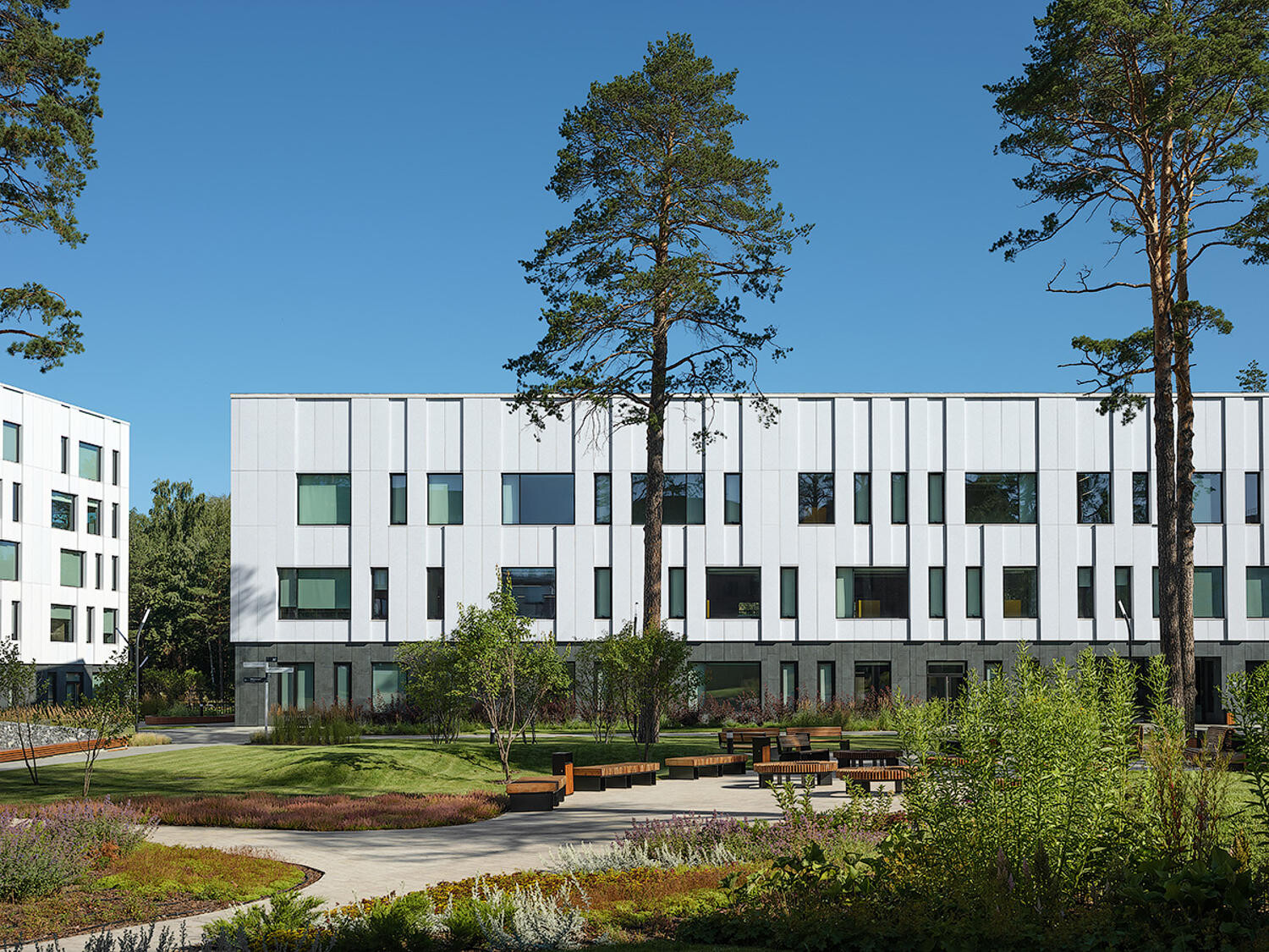 Корпус формирует спокойную современную идентичность школы и создает среду для совместной работы, исследований и развития любознательности; его низкоэтажные объемы деликатно вписаны в экосистему соснового бора. Учебный корпус СУНЦ НГУ позволит создать условия для 625 одаренных школьников.