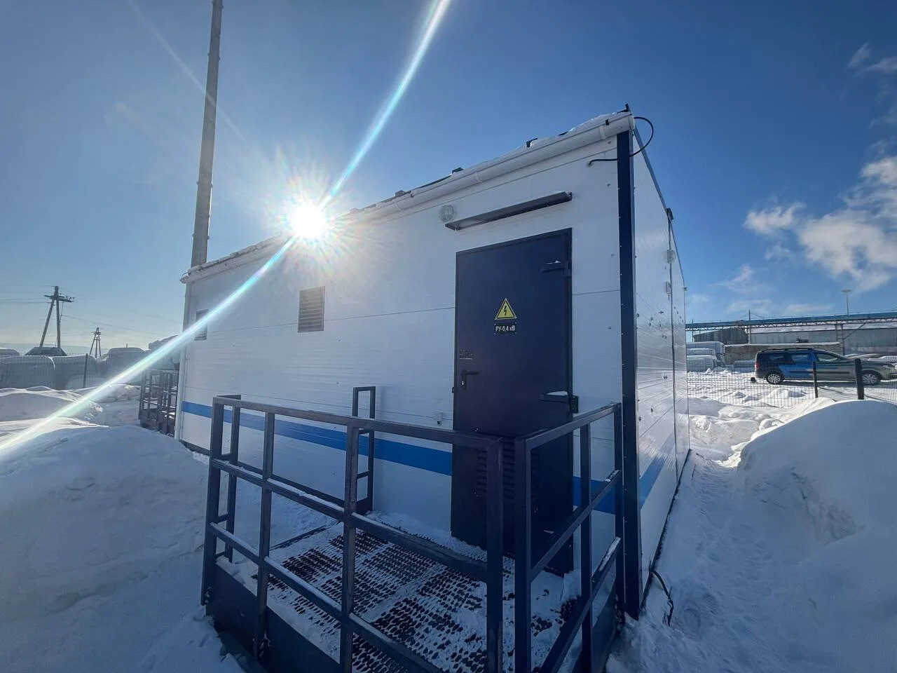 Для эксплуатации в условиях сурового климата конструкция блочно-модульного здания дополнена системой обогреваемого водослива. Она предотвращает образование сосулек и наледи на кровле, что повышает безопасность и срок службы объекта. Решение реализовано по требованию Заказчика.