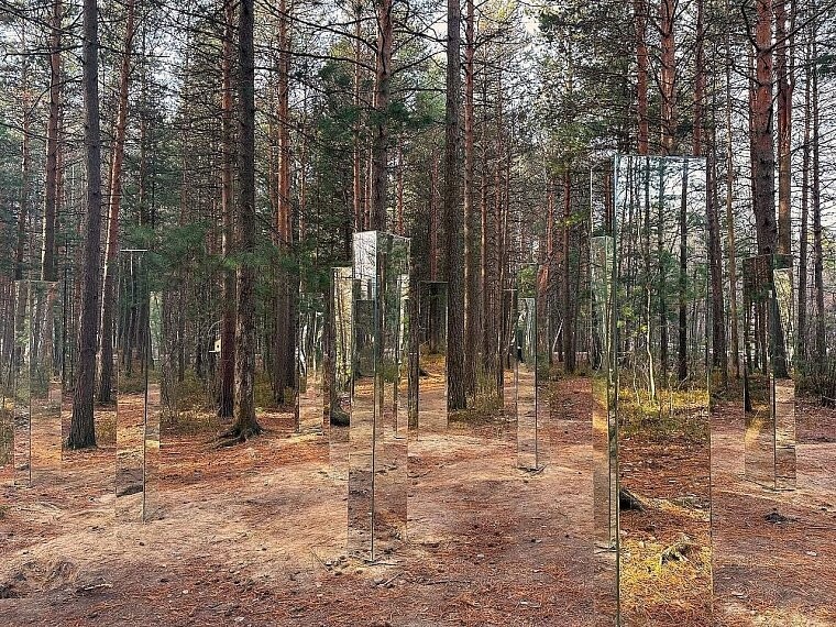 «Зеркальный лес» появился в парке «За Саймой» в Сургуте благодаря художникам. Современная инсталляция представляет собой комплекс из шестнадцати зеркальных столбов, интегрированных в природный ландшафт и создающих уникальное художественное пространство. Инициатива принадлежит местному предпринимателю. Готовый проект передан в МКУ «Лесопарковое хозяйство» на безвозмездной основе как подарок городу и его жителям. Для долговечности объект обработан антикоррозийными составами. При этом зеркала установлены способом, исключающим случайную травму.